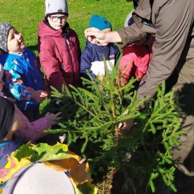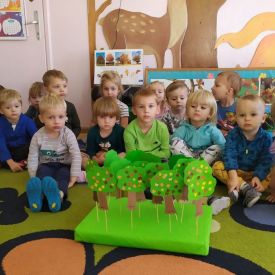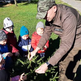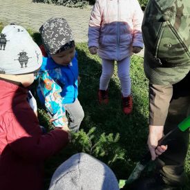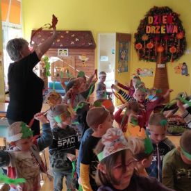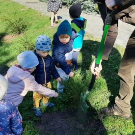 Co roku 10 października obchodzone jest w Polsce Święto Drzewa. To międzynarodowa akcja sadzenia drzew odbywająca się w coraz większej liczbie krajów na świecie. W Polsce Dzień Drzewa odbywa się od około 2002 r. W ramach tego święta prowadzona jest akcja sadzenia drzew. Ma ona w swoich założeniach służyć ochronie drzew i popularyzacji ich znaczenia w biosferze oraz podnosić świadomość ekologiczną społeczeństwa w zakresie ochrony środowiska i zmian klimatu na Ziemi. Ten rok w naszym przedszkolu był bardzo bogaty w działania związane z propagowaniem idei i uświadomienia dzieci o roli drzew w przyrodzie oraz ich znaczenia w życiu człowieka. Na uroczystość Dnia Drzewa do naszego przedszkola został zaproszony Pan Michał Zdzymira - leśniczy z Nadleśnictwa Kielce, który podarował nam wiele sadzonek, młodych jodełek. Przedszkolaki miały możliwość posadzenia wraz z nim wiele młodych drzewek na terenie naszego ogrodu. W każdej grupie odbywały się zabawy, gry dydaktyczne, badawcze z drzewem w roli głównej.