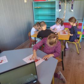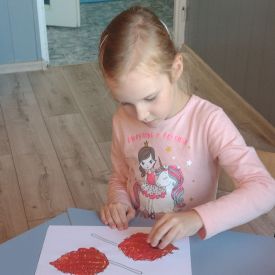 Słuchany utwór był inspiracją do wykorzystania jesiennych barw. Przy dźwiękach muzyki dzieci wykonały pracę plastyczną „Jesienne liście”.