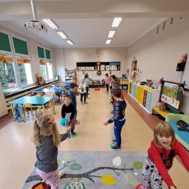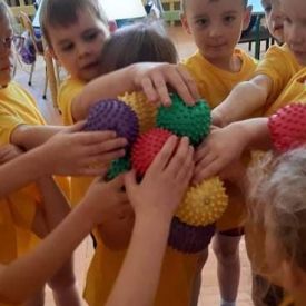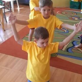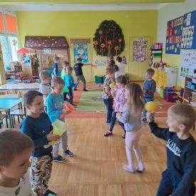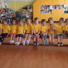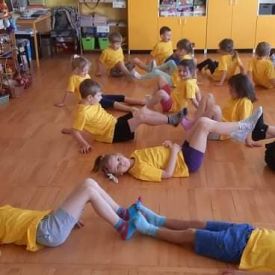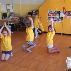 Dzieci z grupy „Pszczółek” i „Sówek” aktywnie uczestniczyły w ćwiczeniach porannych oraz ćwiczeniach gimnastycznych prowadzonych według scenariuszy zajęć sportowych „W sadzie”, „Owoce” w ramach realizacji akcji „Zdrowo i Sportowo”. Przedszkolaki podczas zabaw ruchowych kształtowały prawidłową postawę ciała, rozwijały koncentrację i uwagę, uczyły się współpracować w grupie, wzmacniały sprawność i swoje możliwości fizyczne. Miały przy tym mnóstwo zabawy. A że o zdrowie dbamy, dlatego dużo się ruszamy.