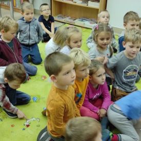 W poniedziałek 24 października 2022r. dzieci z grupy Motylków po raz kolejny odwiedziły Miejską Bibliotekę Publiczną. Uczestniczyły w ciekawych zajęciach przyrodniczych ,, Jakie to drzewo?” Słuchały opowiadań o jesiennych listkach, rozpoznawały po liściach i owocach oraz nazywały pospolite gatunki drzew, krzewów i roślin zielonych. Porównywały wygląd i kształt liści, rozwiązywały rebusy i zagadki. Realizacja zajęć we współpracy z paniami z Biblioteki jest kontynuacją realizowanego w naszym przedszkolu programu ,,Przedszkolny świat przyrody”. Dzieci poszerzyły swoją wiedzę, a przy okazji utrwaliły nazwy pór roku oraz charakterystyczne zmiany zachodzące w przyrodzie. Podsumowaniem zajęć było ozdabianie Eko Drzewa liśćmi wyciętymi z papieru gazetowego.
