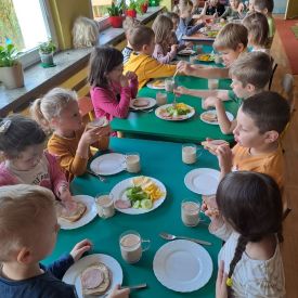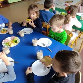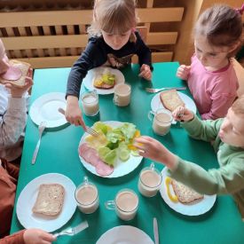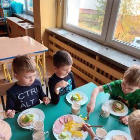 W naszym przedszkolu w ramach realizacji projektu "Przedszkole Promujące Zdrowie" cyklicznie odbywają się śniadania w formie „szwedzkiego stołu”. Przedszkolaki samodzielnie wykonują kanapki podczas śniadania, mają do wyboru zdrowe i smaczne produkty. Dzieci same decydują o tym, co znajdzie się na ich kanapkach. Komponowanie kanapek uczy samodzielności, umiejętności dokonywania wyboru, przełamywania niechęci do spożywania niektórych produktów. Dzieciom bardzo podoba się taki sposób podawania posiłku, oprócz „tworzenia” własnych pysznych kanapek dostarczane są różnorodne i wartościowe dla ich zdrowia składniki, które powinny znaleźć się w codziennej diecie.