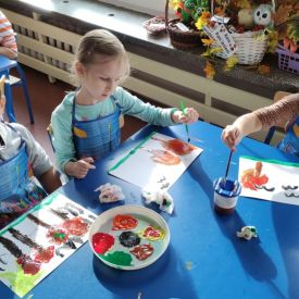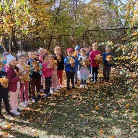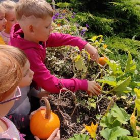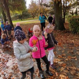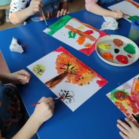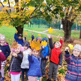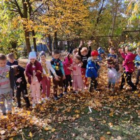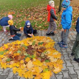 Złota polska jesień umożliwiła przedszkolakom aktywność twórczą na łonie natury. Dzieciaki tworzyły w terenie instalacje, land art z wykorzystaniem materiału przyrodniczego. Poznawały sztukę wieloma zmysłami.