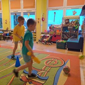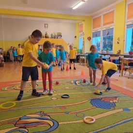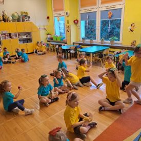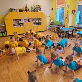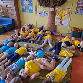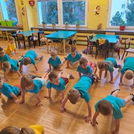 W dniu 17.11.2022 r. dzieci z grupy „Pszczółek” i „Motylków” zrealizowały zestaw ćwiczeń gimnastycznych według scenariusza „Polska” w ramach akcji „Zdrowo i Sportowo”. Dzieci poprzez ćwiczenia ruchowe wzmacniały siłę mięśni rąk i nóg, ćwiczyły koordynację wzrokowo-ruchową, rozpoznawały prawą i lewą stronę. Było wesoło, aktywnie i zdrowo.