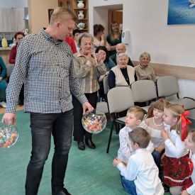 Przedszkolaki za swój występ otrzymały gromkie brawa i niespodziankę przygotowaną przez pana kierownika Klubu Seniora.