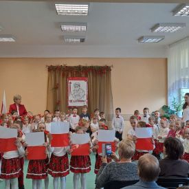 23 listopada reprezentacja naszego przedszkola - dzieci z grup Motylków, Pszczółek i Sówek dały wspaniały występ dla seniorów z Klubu Seniora oraz podopiecznych Środowiskowego Domu Pomocy Społecznej w Kielcach przy ul. Krzemionkowej. Okazją do wizyty było niedawno obchodzone święto - obchody 104 rocznicy odzyskania niepodległości przez Polskę. Dzieci zaprezentowały program artystyczny o charakterze patriotycznym, na twarzach oglądających widać było wzruszenie.