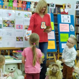 Dnia 25.11.2022 dzieci z grupy Biedronek i Żabek obchodziły Dzień Pluszowego Misia. W tym wesołym dniu przedszkolaki czekało wiele atrakcji. Zostały zaproszone do wspólnej zabawy przez panie z zaprzyjaźnionej biblioteki . Mali milusińscy, poznali historię misiowego święta, wysłuchali o nich bajki, oraz rozwiązywali zagadki, których odpowiedzi były przedstawione na ilustracjach. Dzień minął pod znakiem uśmiechu.