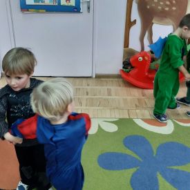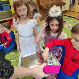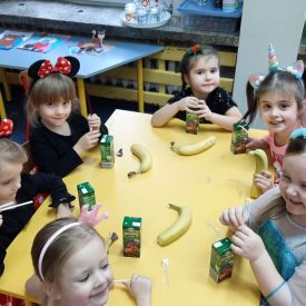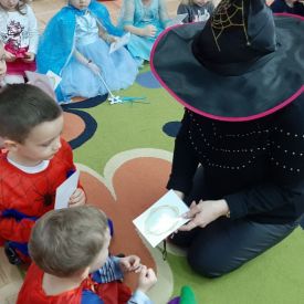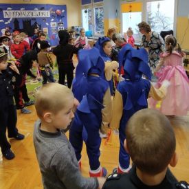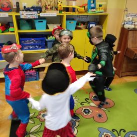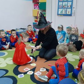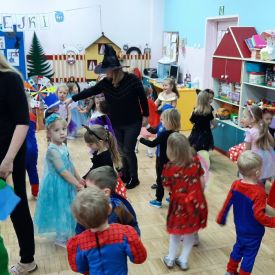 Ten dzień był dniem radosnych zabaw i wróżb, w których dzieci mogły poznać swoją bliższą i dalszą przyszłość. Wróżby przeplatane były tańcami oraz zabawami przy skocznej muzyce. Przebrane przedszkolaki i wesoła zabawa w gronie kolegów sprawiła, iż w przedszkolu zagościł radosny i wyjątkowy czarodziejski nastrój. Pod koniec zabawy przedszkolaki raczyły się zdrowym poczęstunkiem przygotowanym przez Rodziców, za który serdecznie dziękujemy.
