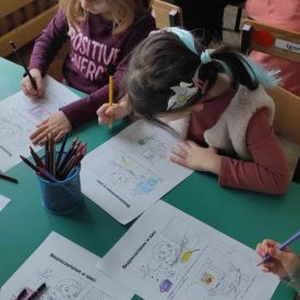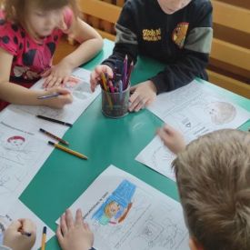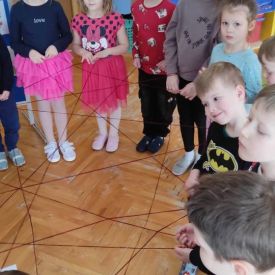 Poprzez wspólną zabawę ,,Sieć komputerowa” z wykorzystaniem włóczki dzieci próbowały zrozumieć czym jest sam Internet, czyli właśnie tzw. Sieć. Pokolorowały rysunki przygotowane na „Dzień Bezpiecznego Internetu” według własnego pomysłu.