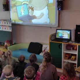 Przedszkolaki podczas zajęć obejrzały bajki edukacyjne z serii ,,Bezpieczeństwo w sieci”,,,Owce w sieci”, „Bez kożuszka”, „Tajemniczy przyjaciel”, które ukazywały dzieciom, że Internet niesie ze sobą różne zagrożenia.