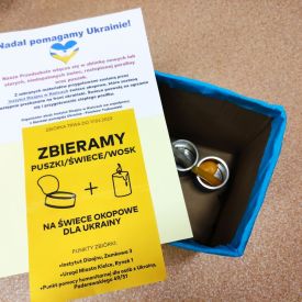 Dziękujemy wszystkim dzieciom, rodzicom, przyjaciołom naszego Przedszkola za włączenie się w akcję "Puszki, świece, wosk na świece okopowe dla Ukrainy" zorganizowaną na terenie miasta Kielce przez Instytut Dizajnu.