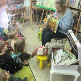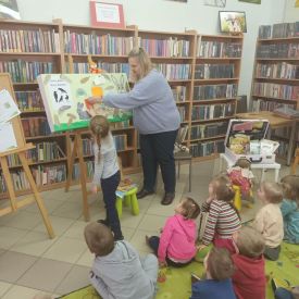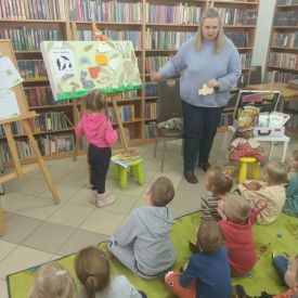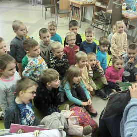 28 lutego dzieci z grupy Motylków po raz kolejny uczestniczyły w ciekawych zajęciach zorganizowanych przez Panie z Miejskiej Biblioteki Publicznej Filia nr 2. Tym razem Pani Ania przeczytała książkę Wiery Badalskiej „Szare piórko” a następnie przedszkolaki odgadywały zagadki obrazkowe dotyczące treści. Najwięcej radości sprawiły Motylkom zaskakujące ilustracje w książkach 3D.