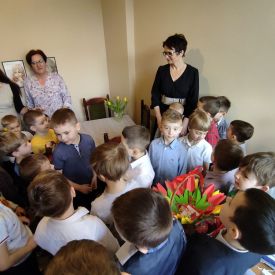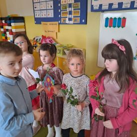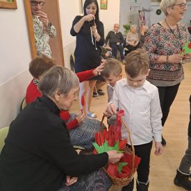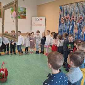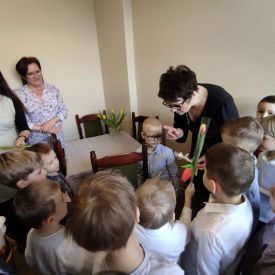 Również dzieci z grupy „Pszczółek” wybrały się z wizytą uświetniającą Dzień Kobiet do Klubu Seniora, Środowiskowego Domu Samopomocy Typu C, Szkoły Podstawowej nr 31.