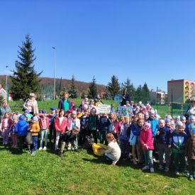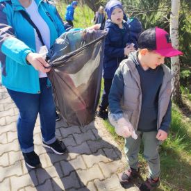 Wszystkie przedszkolaki w sposób praktyczny włączyły się w akcję „Sprzątamy dla Polski”, gdzie będąc wyposażone w jednorazowe rękawiczki i worki wyruszyły na sprzątanie terenu wokół Przedszkola. Dzięki aktywnemu udziałowi w akcji zebraliśmy trzy worki śmieci, które zostały złożone do odpowiednich pojemników. Po intensywnym wysiłku przedszkolaki przeszły uliczkami osiedla z transparentami promującymi dbanie o środowisko naturalne naszego wspólnego domu – Ziemi.