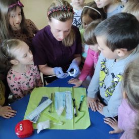 W maju przedszkolaki spotkały się z Panią stomatolog - mamą Jasia z grupy Motylków. Pani Iwona poprowadziła w grupach zajęcia profilaktyczne nt. "Higiena jamy ustnej". Dzieci dowiedziały się jak należy dbać o zęby, które potrawy są zdrowe dla zębów, a które im szkodą. Dziękujemy Pani stomatolog za spotkanie i cenne rady.