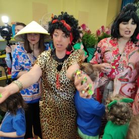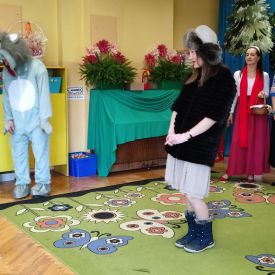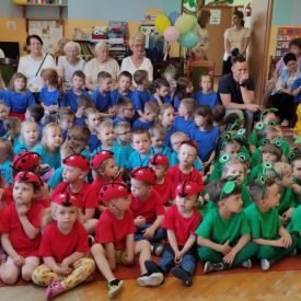 Dzień Dziecka w naszym przedszkolu był bardzo wyjątkowy. Nauczycielki Pani Ula i Pani Monika oraz Rodzice dzieci z grupy Żabek i Sówek przygotowali dla swoich pociech i wszystkich pozostałych przedszkolaków wspaniałe przedstawienie pt. „ Czerwone Kapturki”. Każdy rodzic doskonale przygotował się do swojej roli oraz zaprezentował wspaniały strój. W efekcie rodzice wypadli znakomicie, wzbudzili wśród publiczności zachwyt i podziw. Po spektaklu odbyło się spotkanie dzieci i występujących rodziców, wspólne zdjęcia oraz słodki poczęstunek. Bardzo dziękujemy Rodzicom za zaangażowanie oraz poświęcony czas na przygotowanie tak efektownego przedstawienia w ramach przedsięwzięcia Rodzice - Dzieciom (VII edycja). Do zobaczenia, zapraszamy za rok.