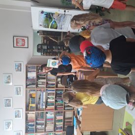 Następnie przedszkolaki zwiedzały kolejne pomieszczenia szkolne: świetlicę, stołówkę szkolną, bibliotekę, szatnię. Największym zaskoczeniem było usłyszenie brzmienia dzwonka szkolnego.