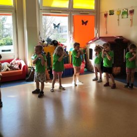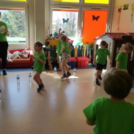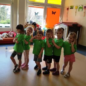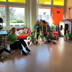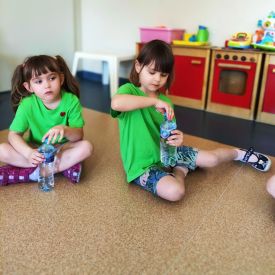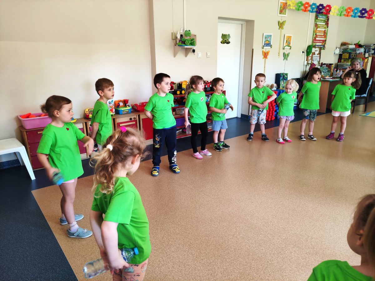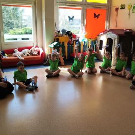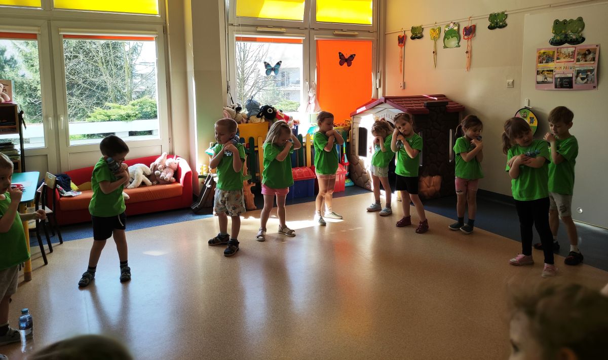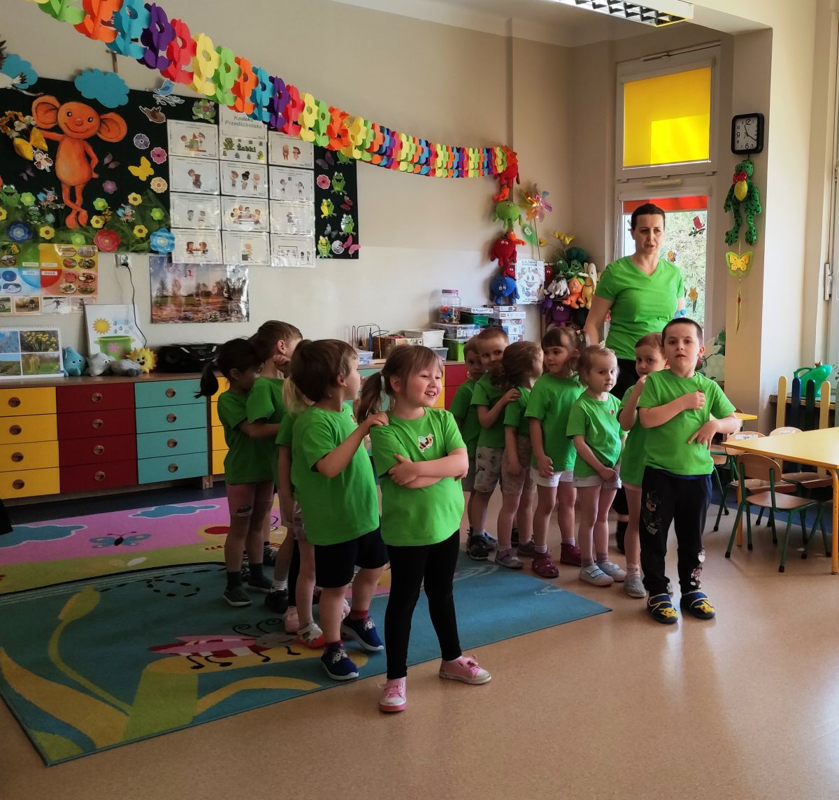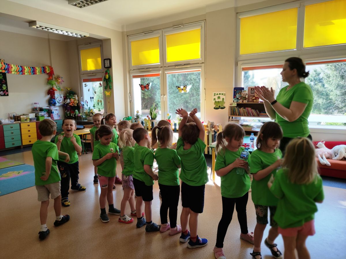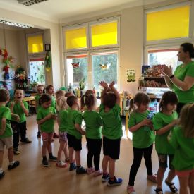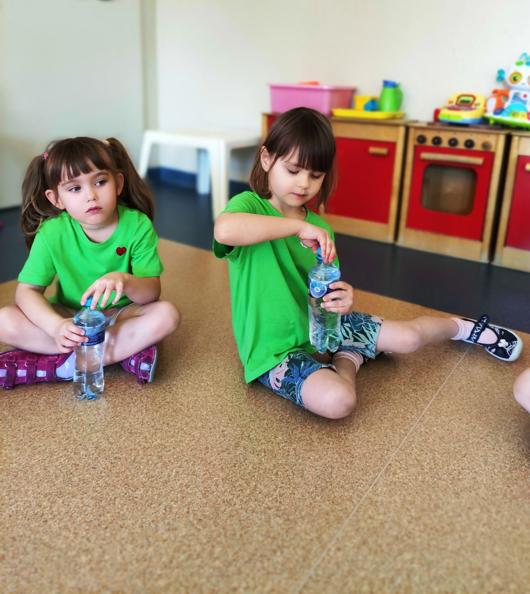 Dzieci z grupy Żabek rozwijały sprawność fizyczną poprzez zabawy ruchowe i ćwiczenia gimnastyczne z wykorzystaniem butelek z wodą mineralną. Zajęcia z nietypowymi przyborami sprawiły dzieciom dużo frajdy. Na zakończenie ćwiczeń dzieci piły wodę - najzdrowszy napój na naszej planecie. Choć samodzielne odkręcenie butelki nie było łatwym zadaniem. Udało się to tylko 3 dziewczynkom. Brawa dla Natalii, Neli oraz Róży. Pozostałe dzieci obiecały ćwiczyć tę umiejętność w domu.