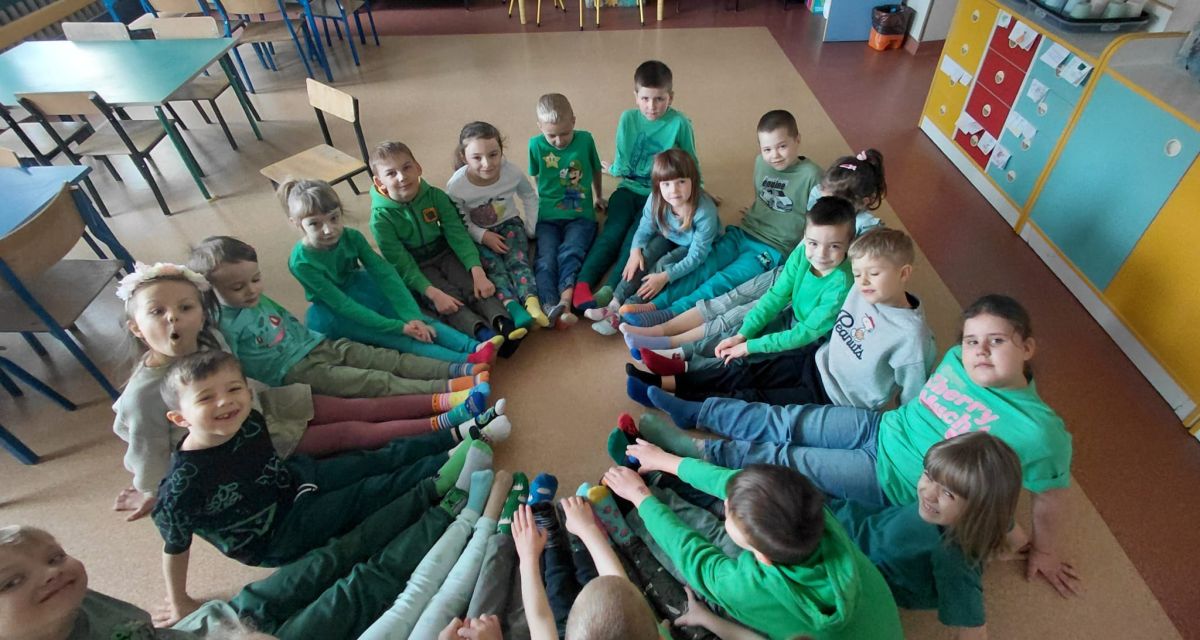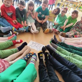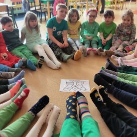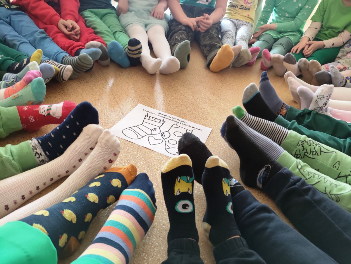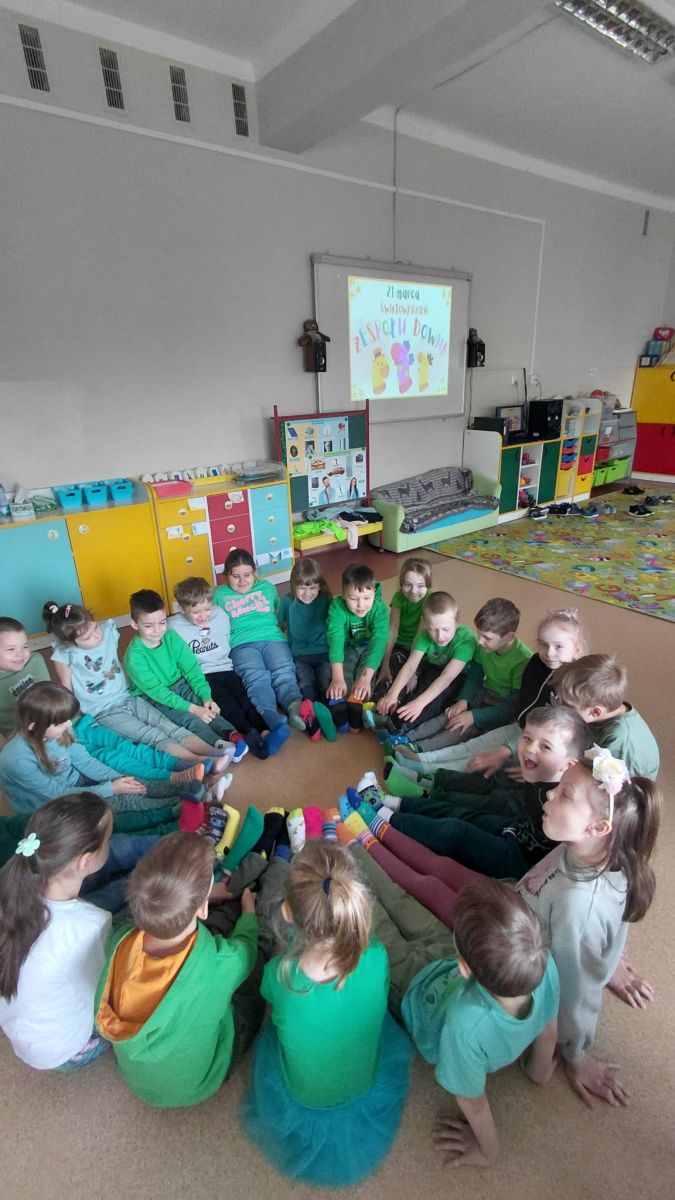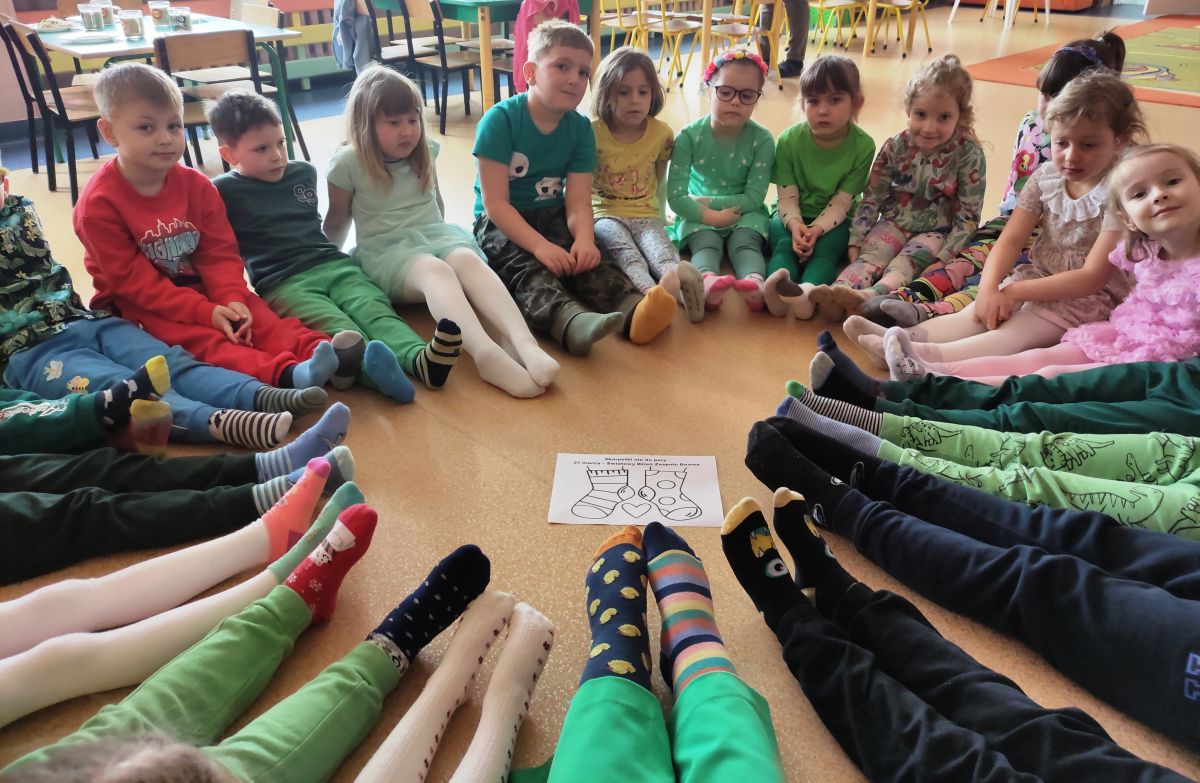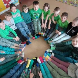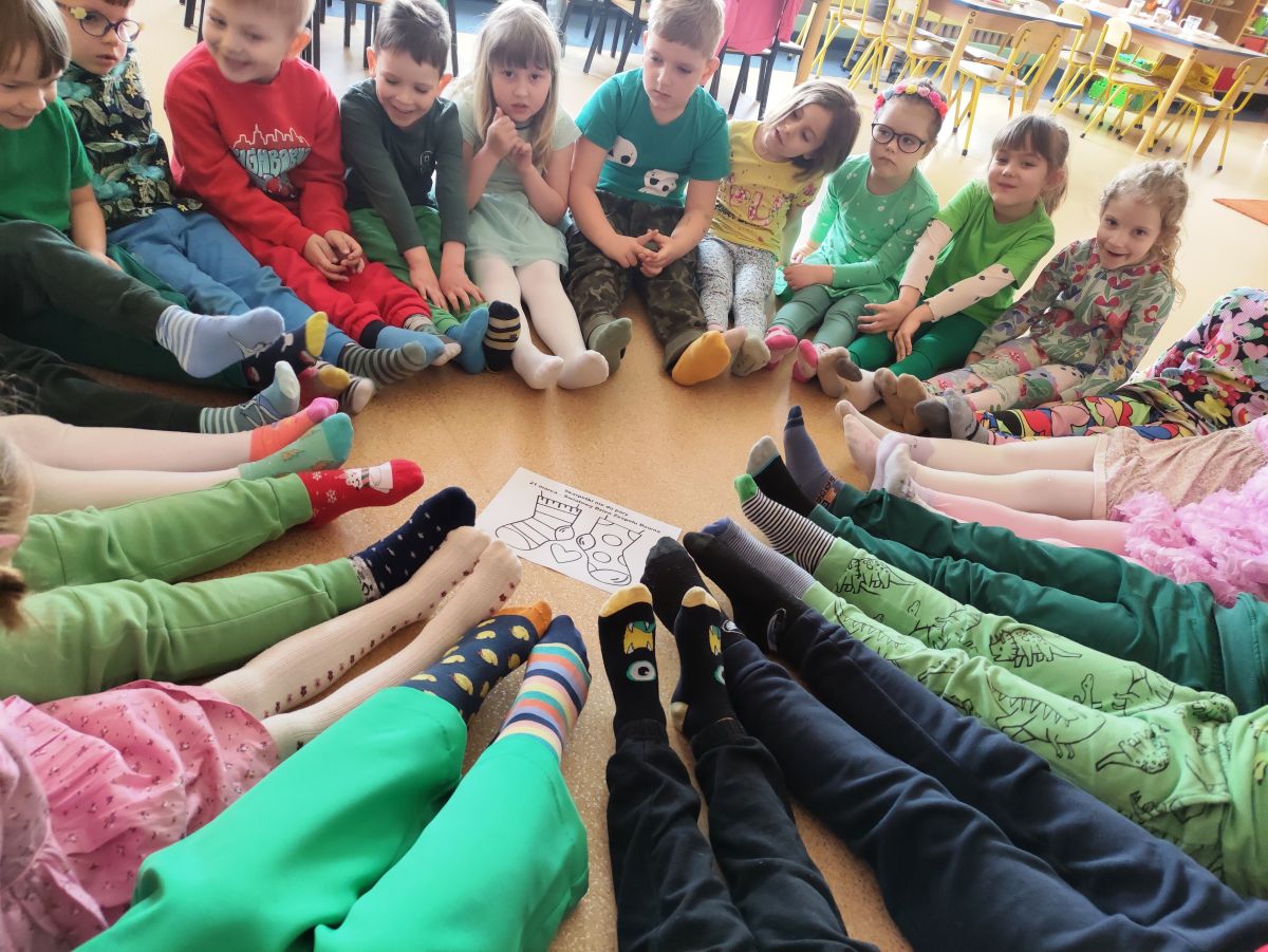 Po powrocie do przedszkola przyszedł czas na zabawy z kolorowymi skarpetkami nie do pary z okazji Światowego Dnia Zespołu Downa. Takie dni, to wspaniała okazja do edukacji przez zabawę, nauka empatii, tolerancji i akceptacji różnorodności.