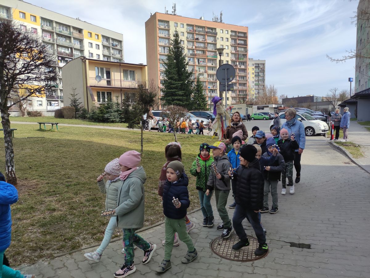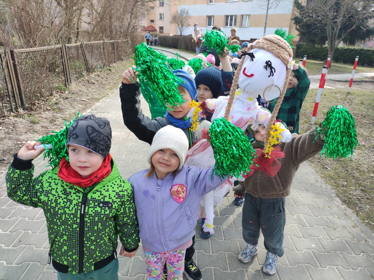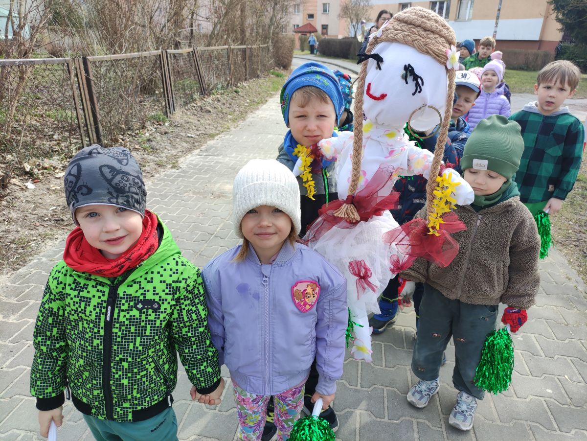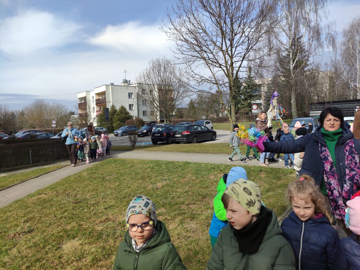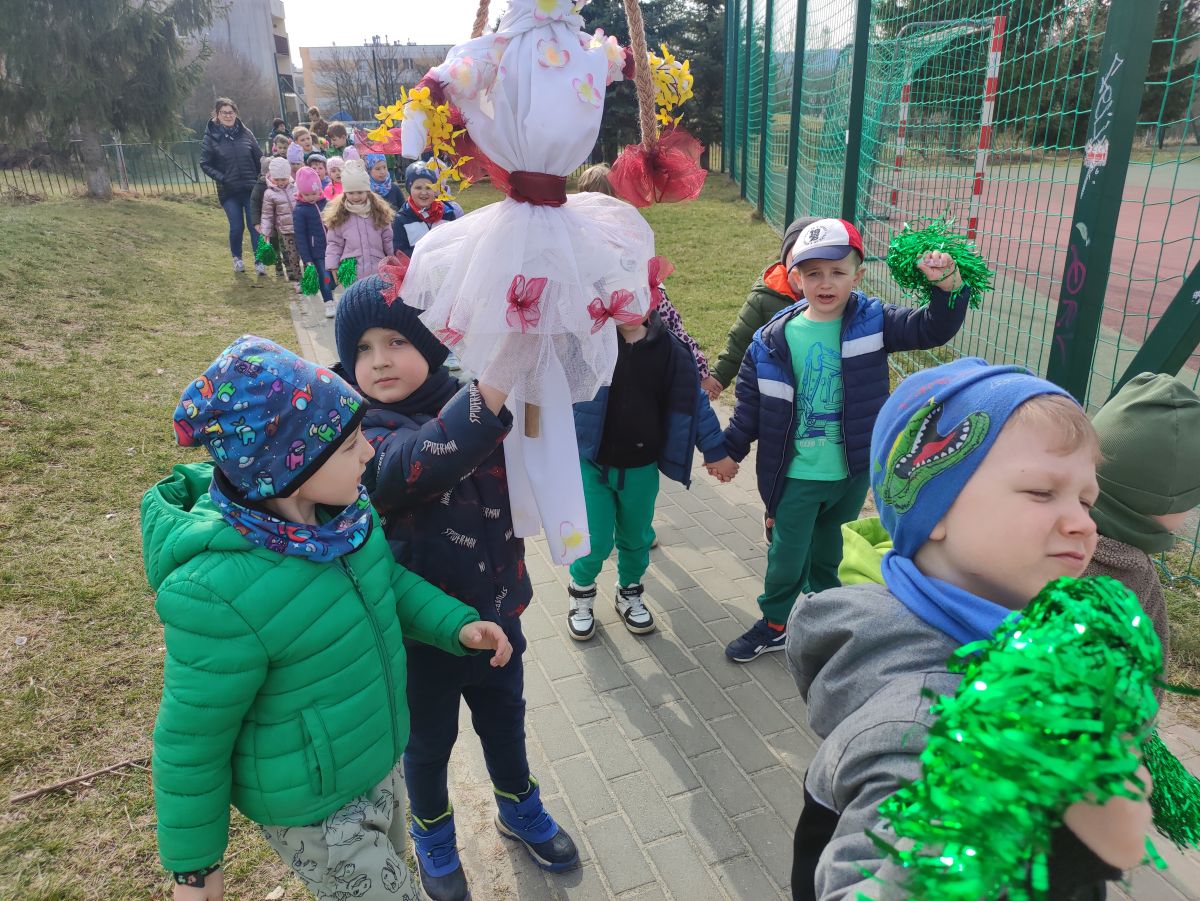 20 marca wszystkie przedszkolaki wyruszyły w barwnym korowodzie po osiedlu, by oznajmić wszystkim, że przyszła wiosna. Dzieci wznosiły radosne okrzyki, śpiewały piosenki oraz grały na instrumentach. Mijani przechodnie obdarzali dzieci uśmiechem i razem z przedszkolakami cieszyli się, że zima już odeszła za morze.