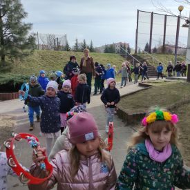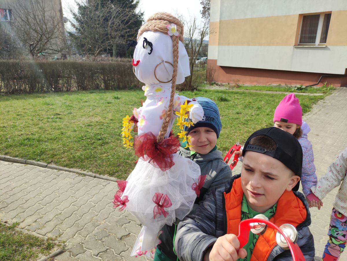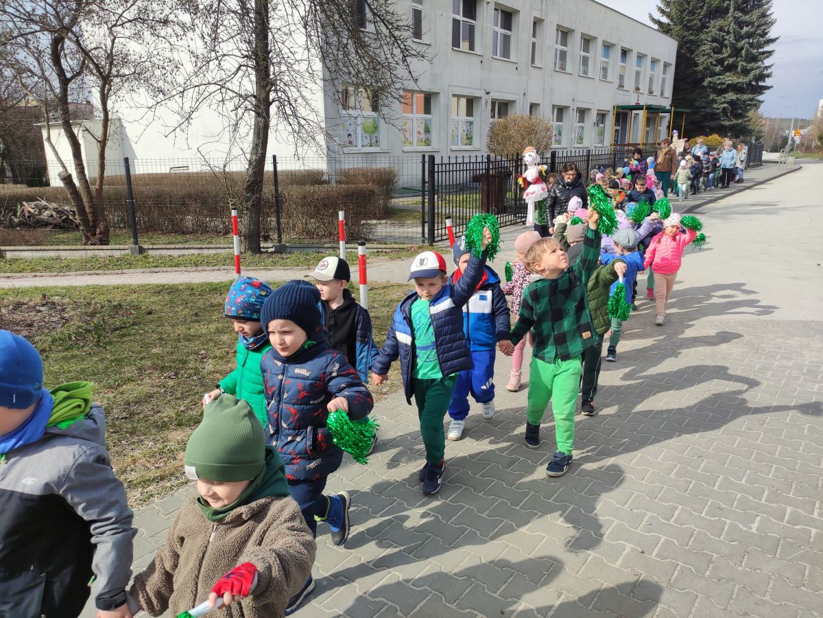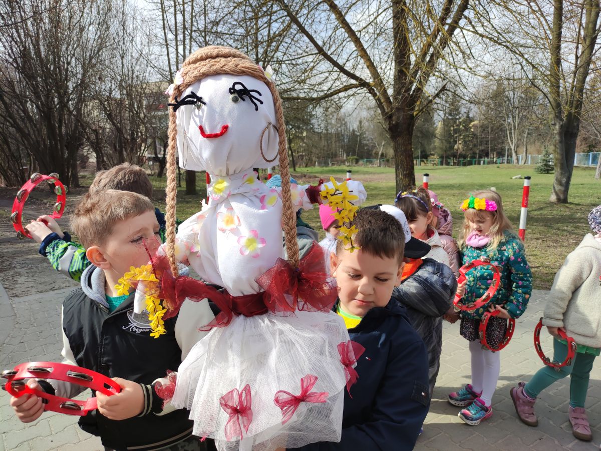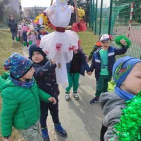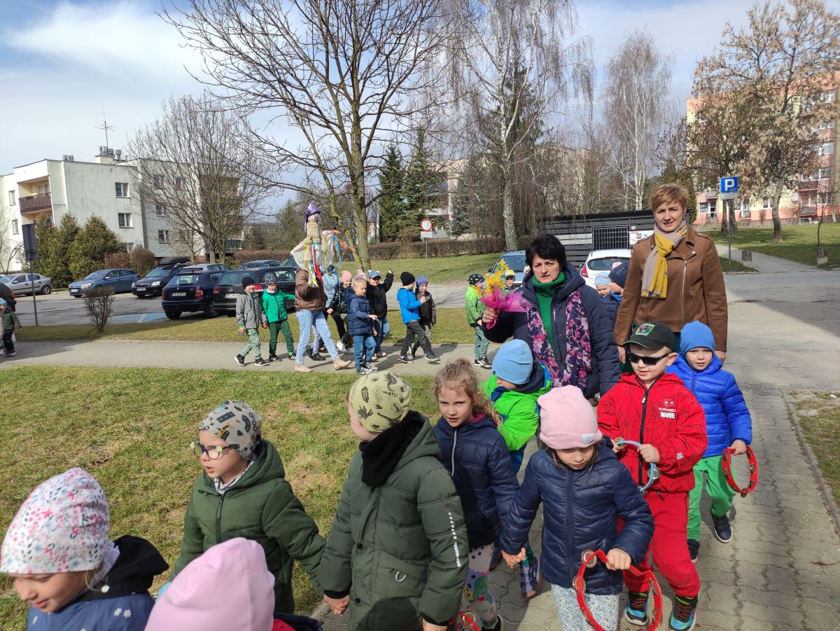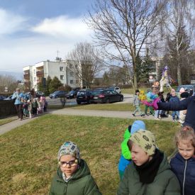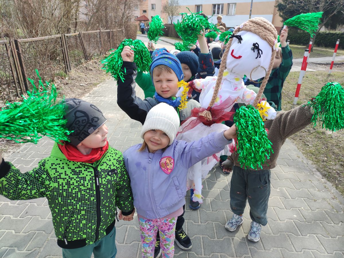 20 marca wszystkie przedszkolaki wyruszyły w barwnym korowodzie po osiedlu, by oznajmić wszystkim, że przyszła wiosna. Dzieci wznosiły radosne okrzyki, śpiewały piosenki oraz grały na instrumentach. Mijani przechodnie obdarzali dzieci uśmiechem i razem z przedszkolakami cieszyli się, że zima już odeszła za morze.