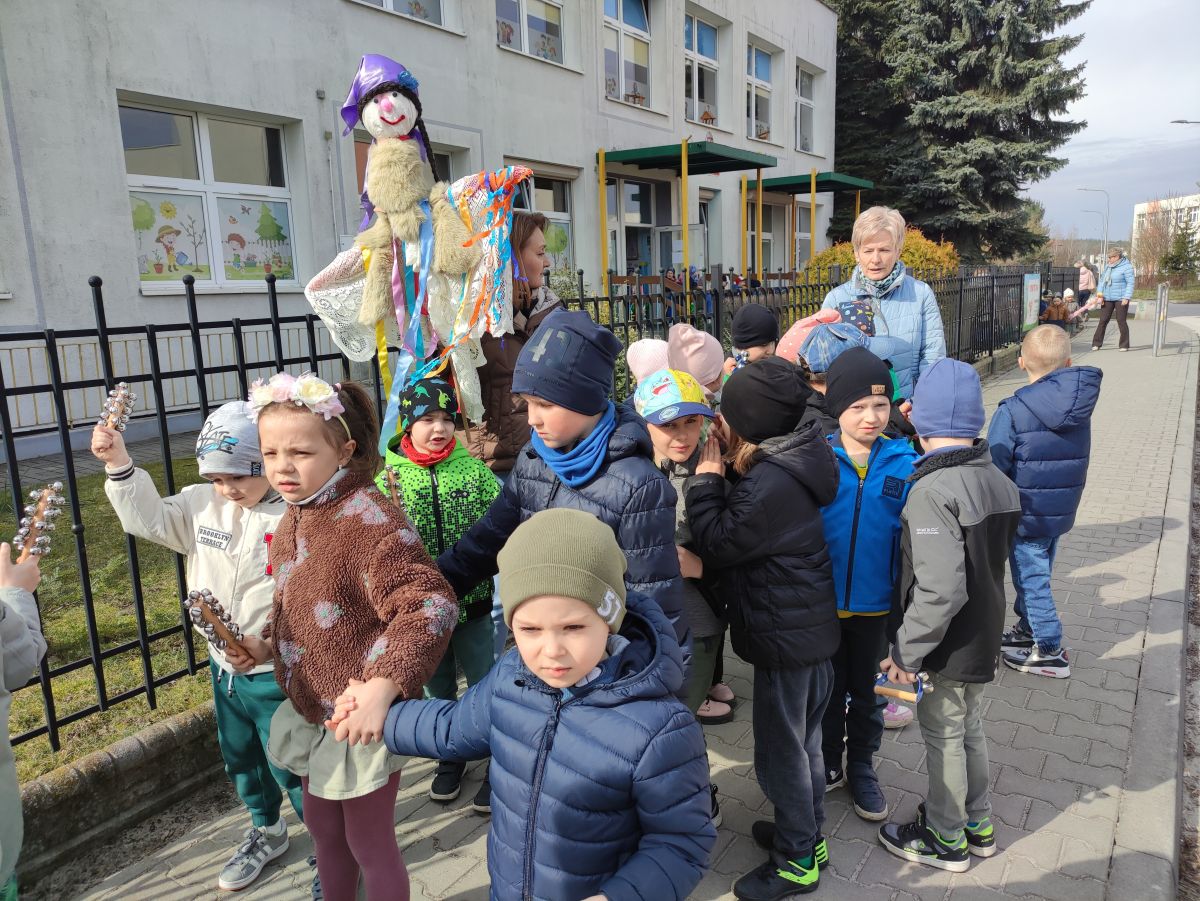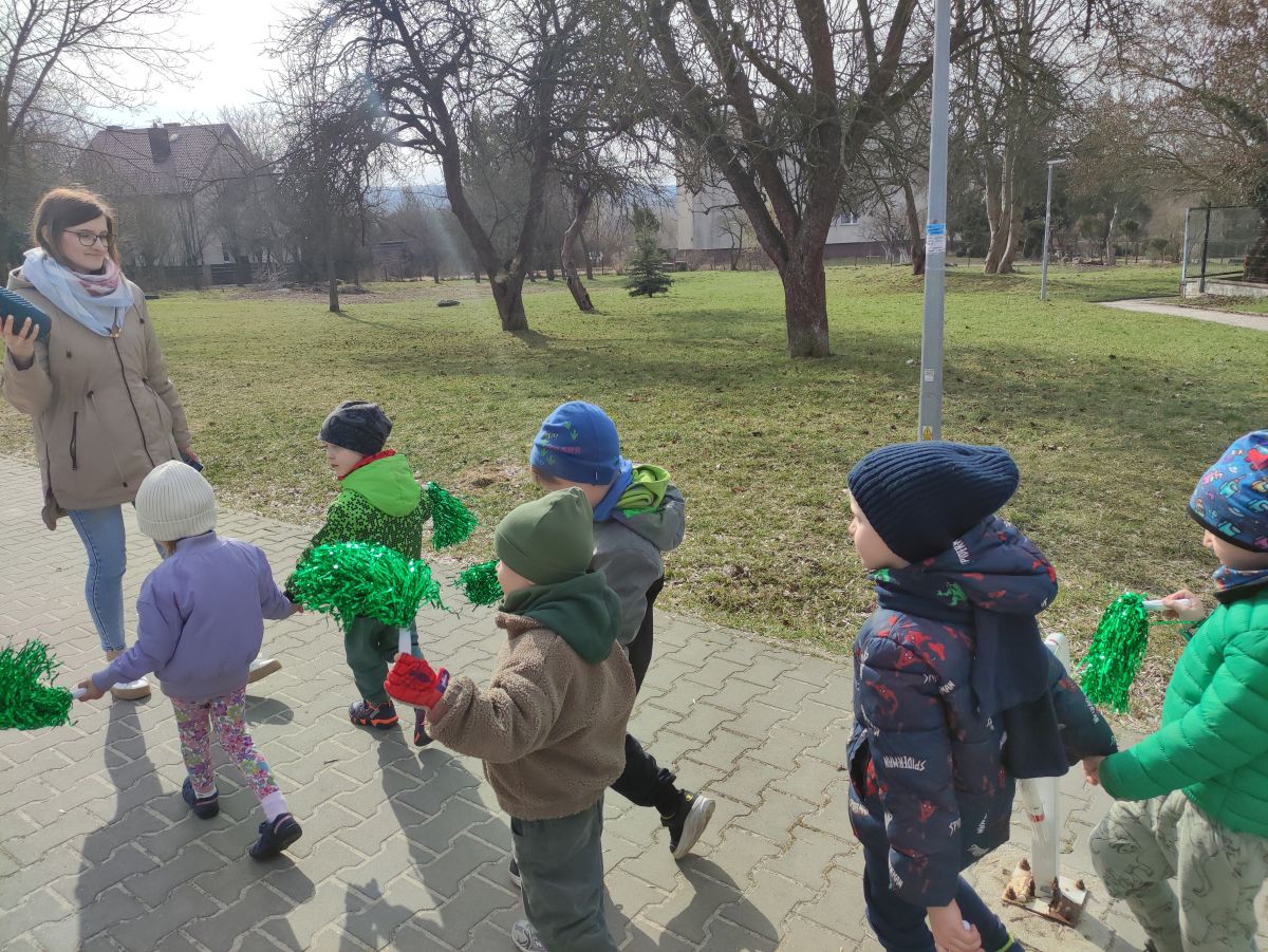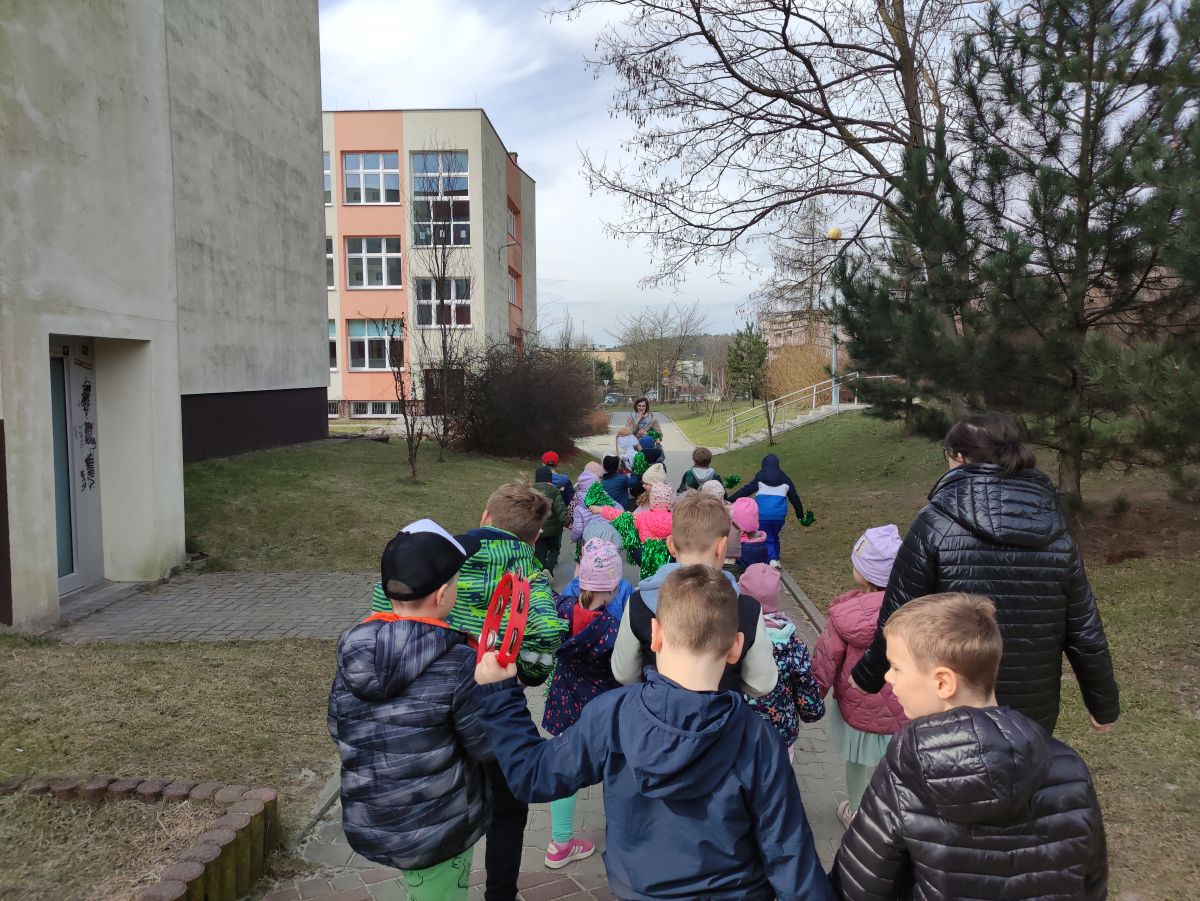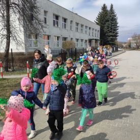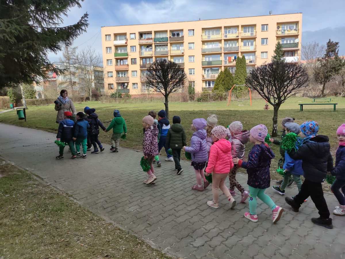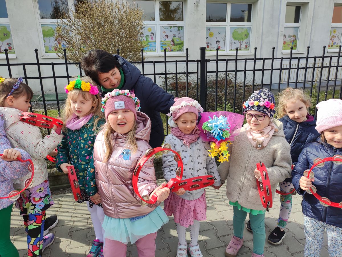 20 marca wszystkie przedszkolaki wyruszyły w barwnym korowodzie po osiedlu, by oznajmić wszystkim, że przyszła wiosna. Dzieci wznosiły radosne okrzyki, śpiewały piosenki oraz grały na instrumentach. Mijani przechodnie obdarzali dzieci uśmiechem i razem z przedszkolakami cieszyli się, że zima już odeszła za morze.