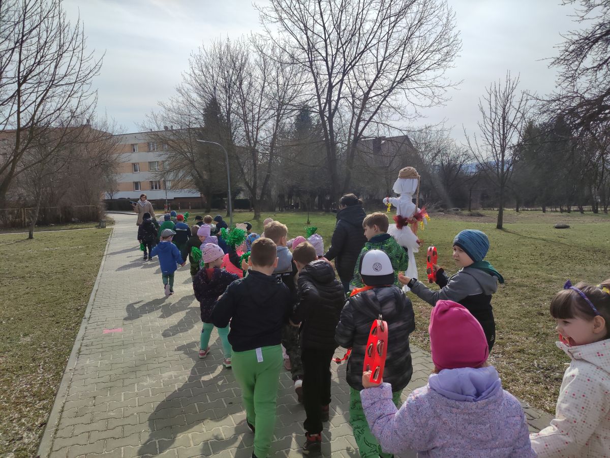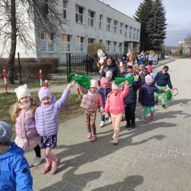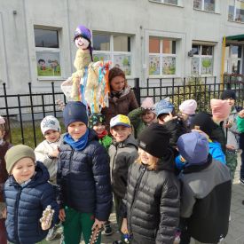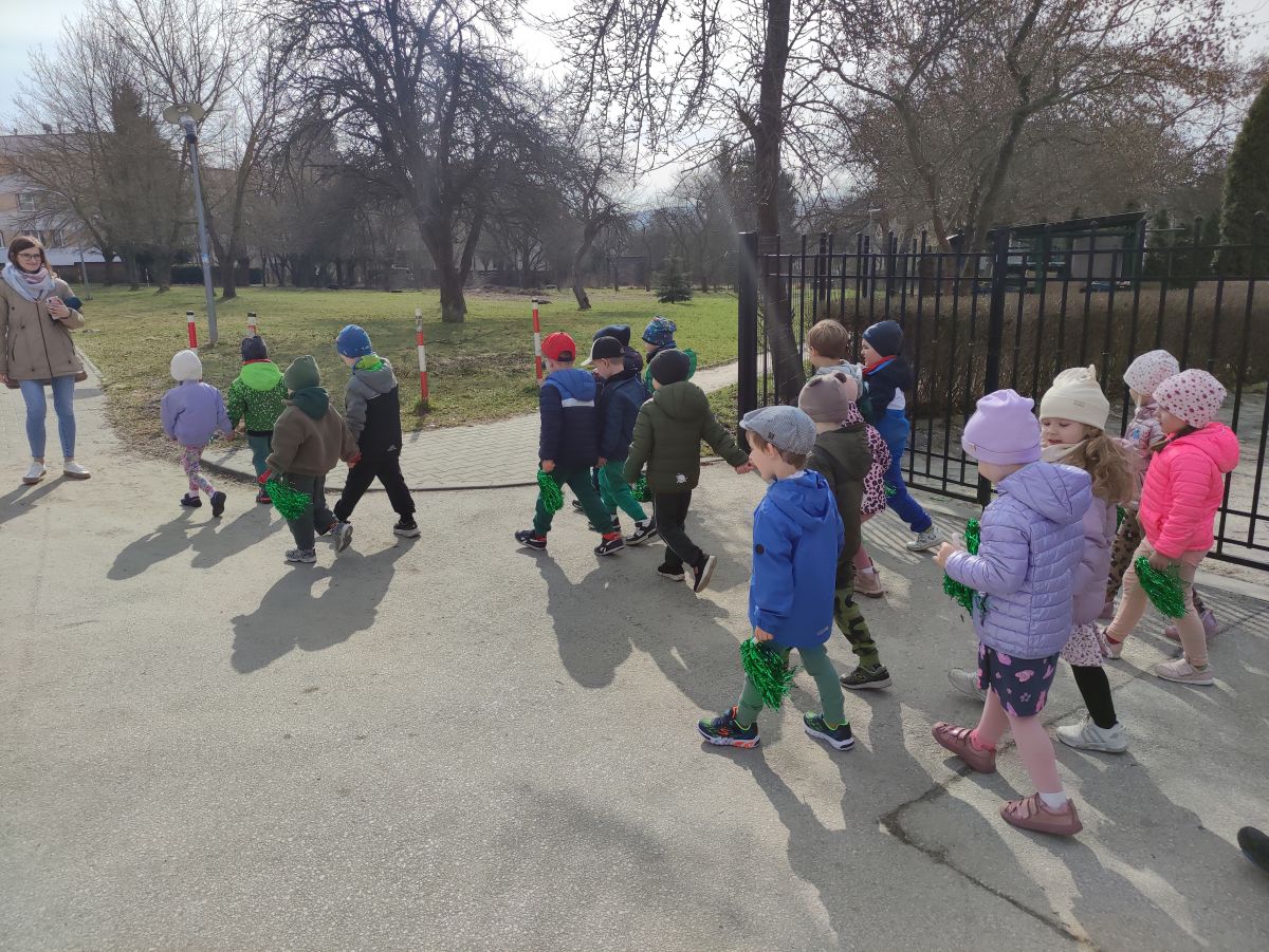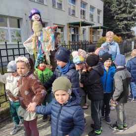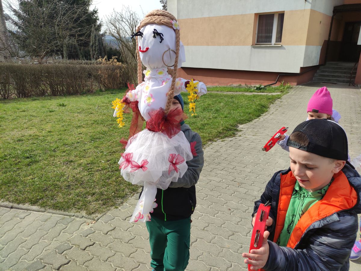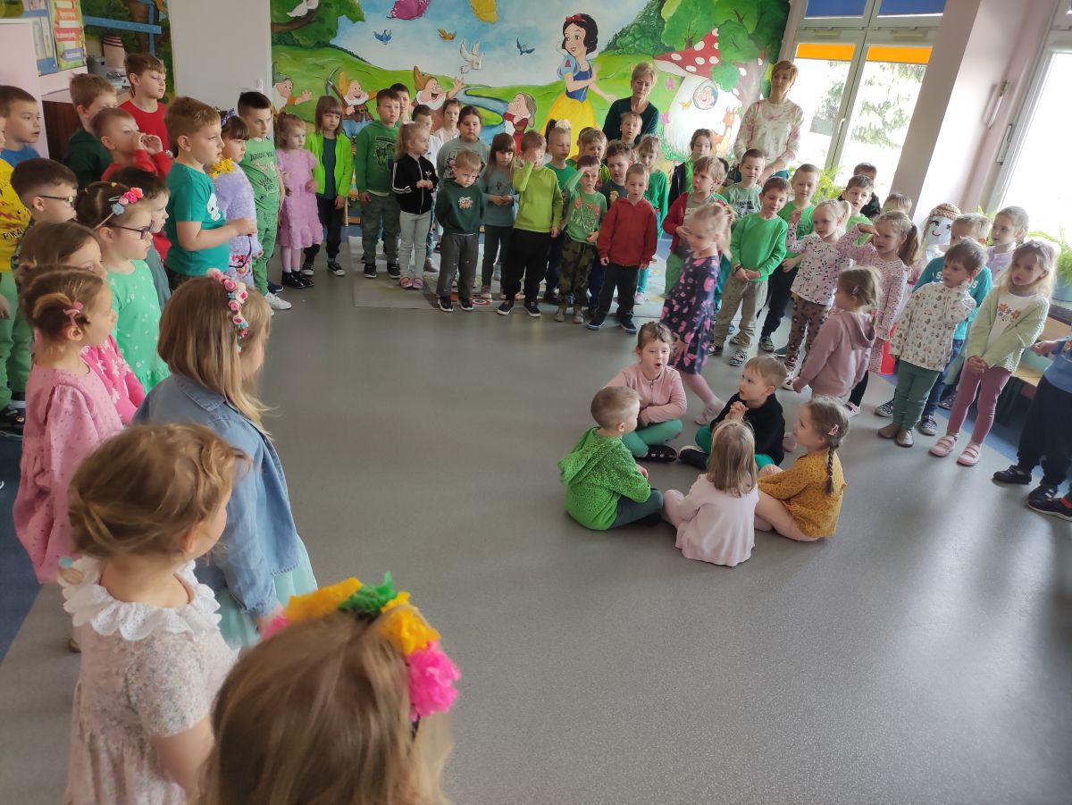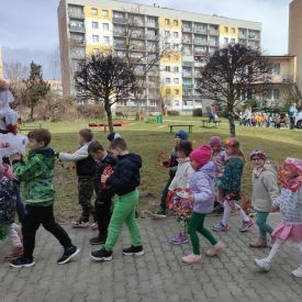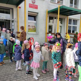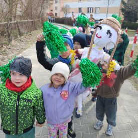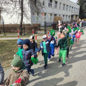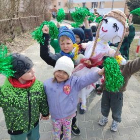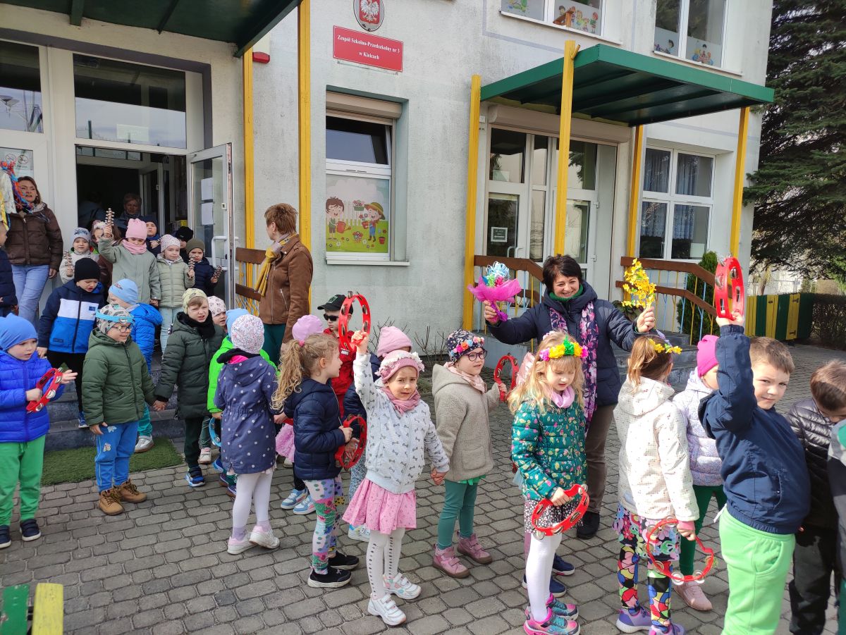 20 marca wszystkie przedszkolaki wyruszyły w barwnym korowodzie po osiedlu, by oznajmić wszystkim, że przyszła wiosna. Dzieci wznosiły radosne okrzyki, śpiewały piosenki oraz grały na instrumentach. Mijani przechodnie obdarzali dzieci uśmiechem i razem z przedszkolakami cieszyli się, że zima już odeszła za morze.