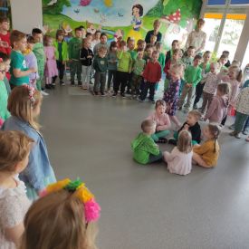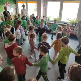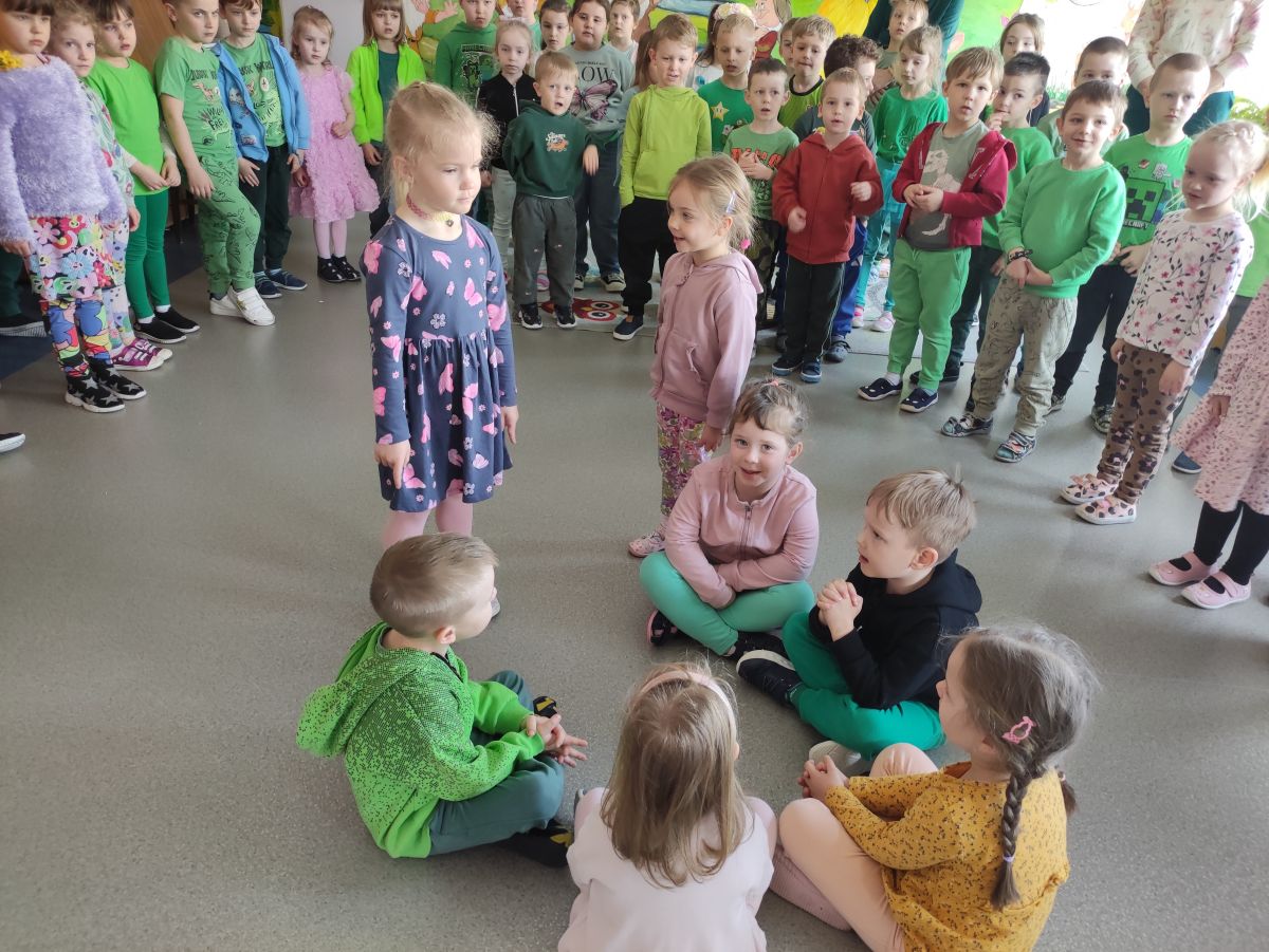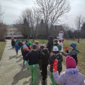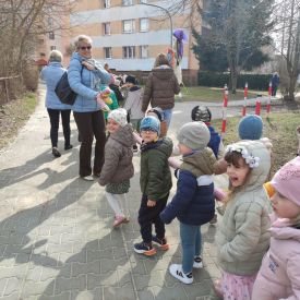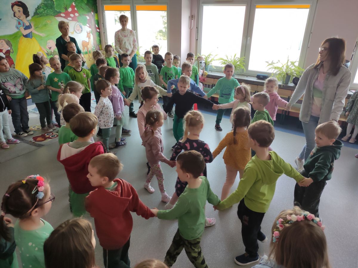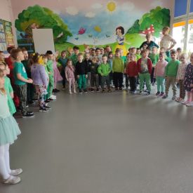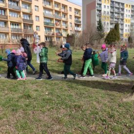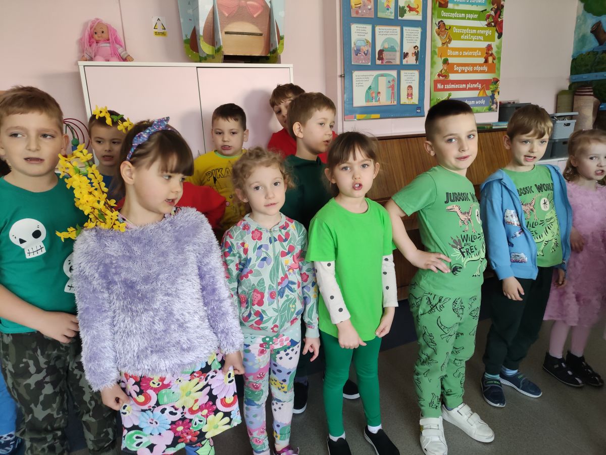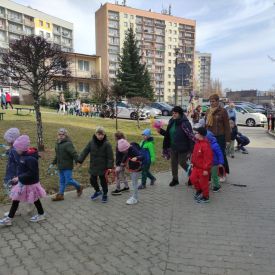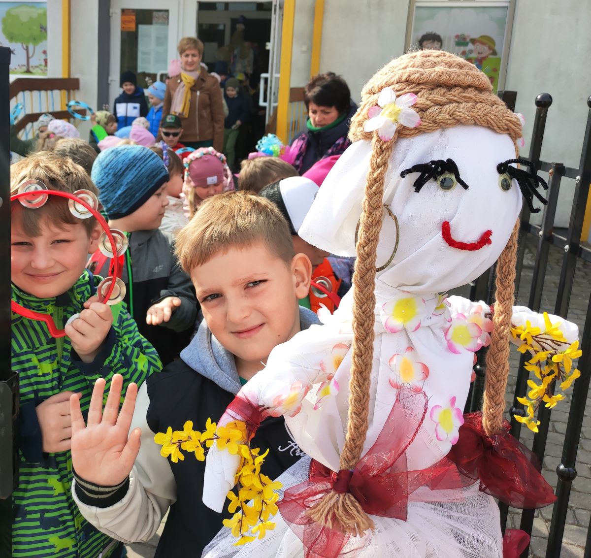 20 marca wszystkie przedszkolaki wyruszyły w barwnym korowodzie po osiedlu, by oznajmić wszystkim, że przyszła wiosna. Dzieci wznosiły radosne okrzyki, śpiewały piosenki oraz grały na instrumentach. Mijani przechodnie obdarzali dzieci uśmiechem i razem z przedszkolakami cieszyli się, że zima już odeszła za morze.