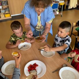 Pszczółki znają zdrowotne właściwości miodu dlatego też z wielką chęcią zajadały go podczas śniadanka. Przedszkolaki wykonały kartę pracy związaną z pszczołami. Dzień był pełen wrażeń, a dzieci były pracowite jak pszczółki.