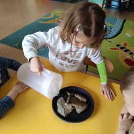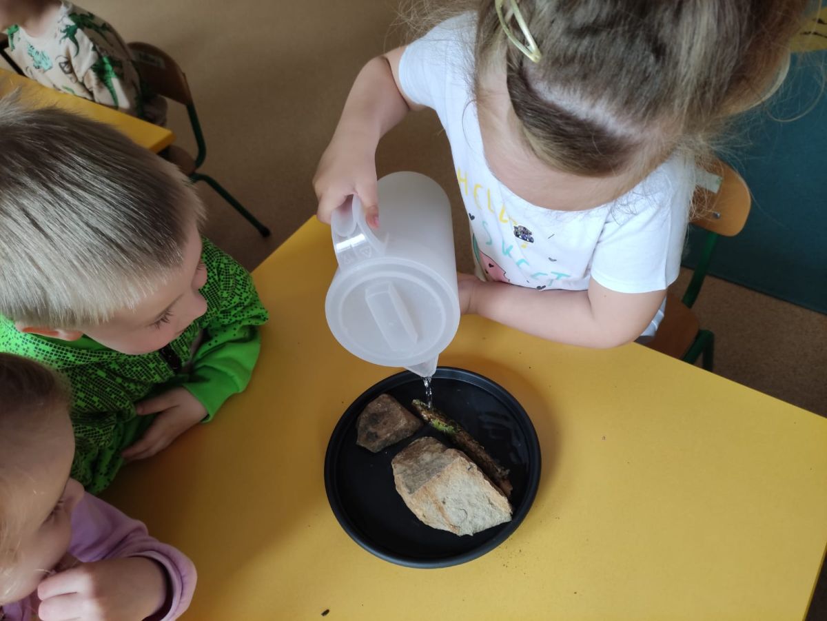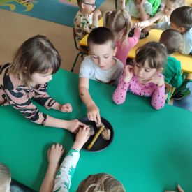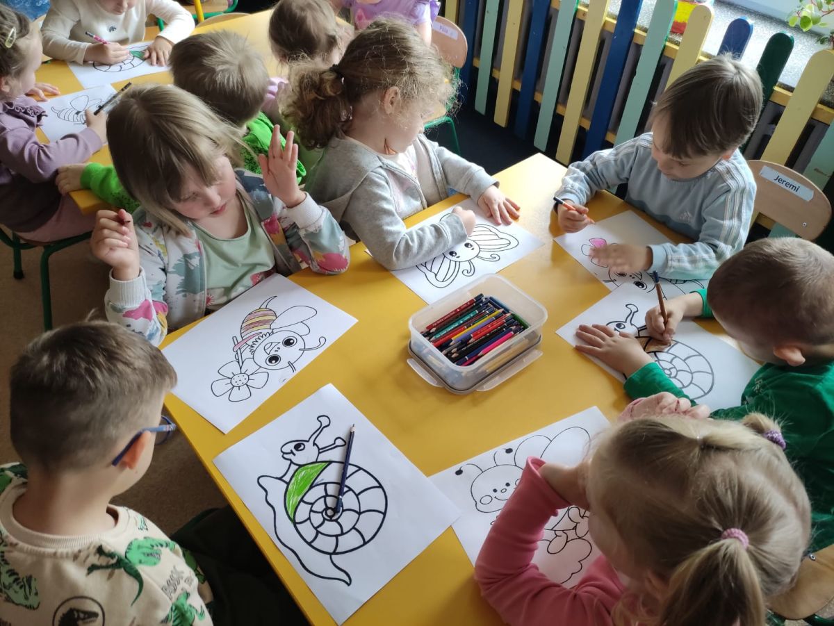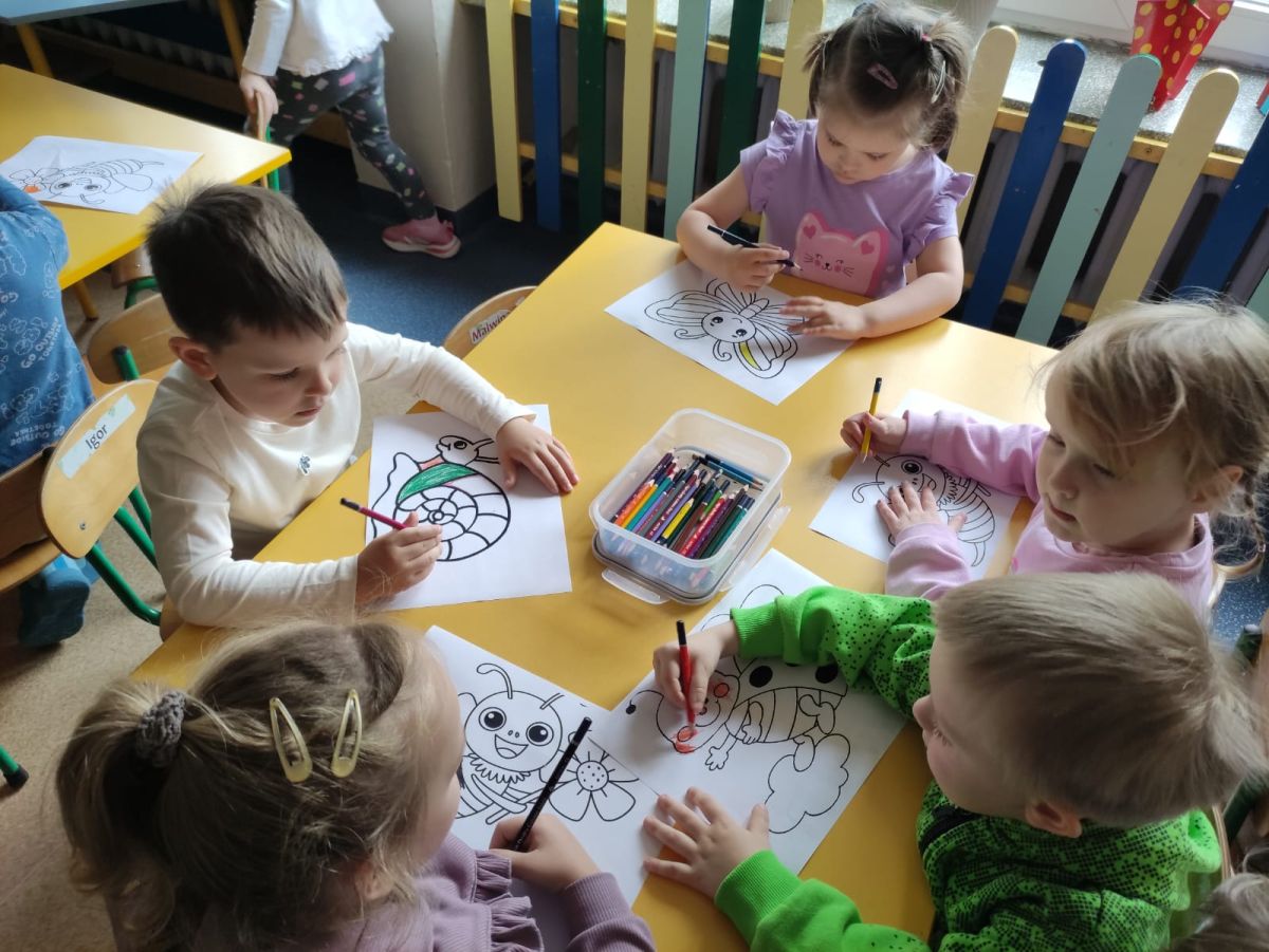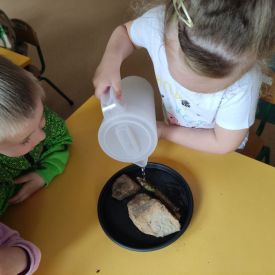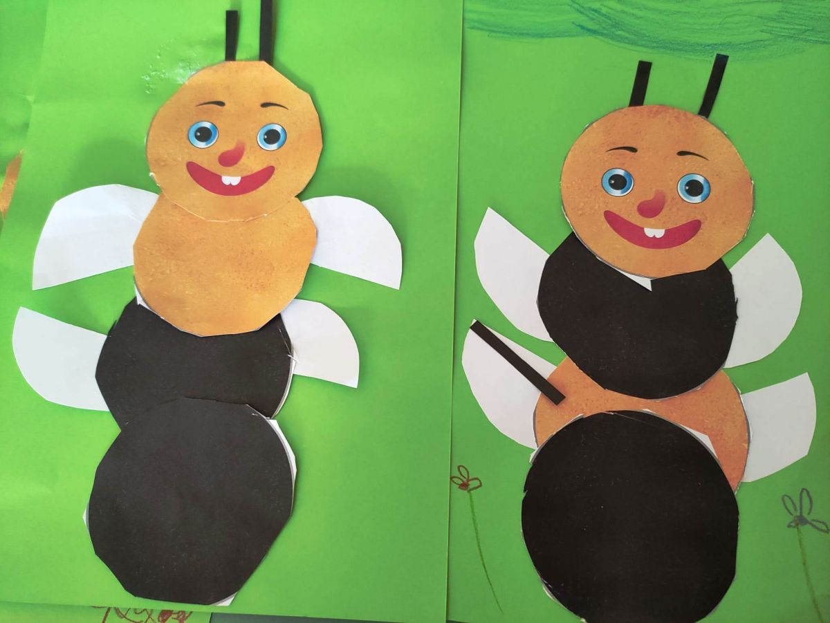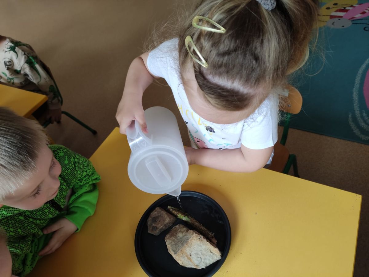 Przedszkolaki w zespołach zrobiły poidełka dla pszczół, które następnie rozstawiły w naszym ogrodzie przedszkolnym.