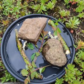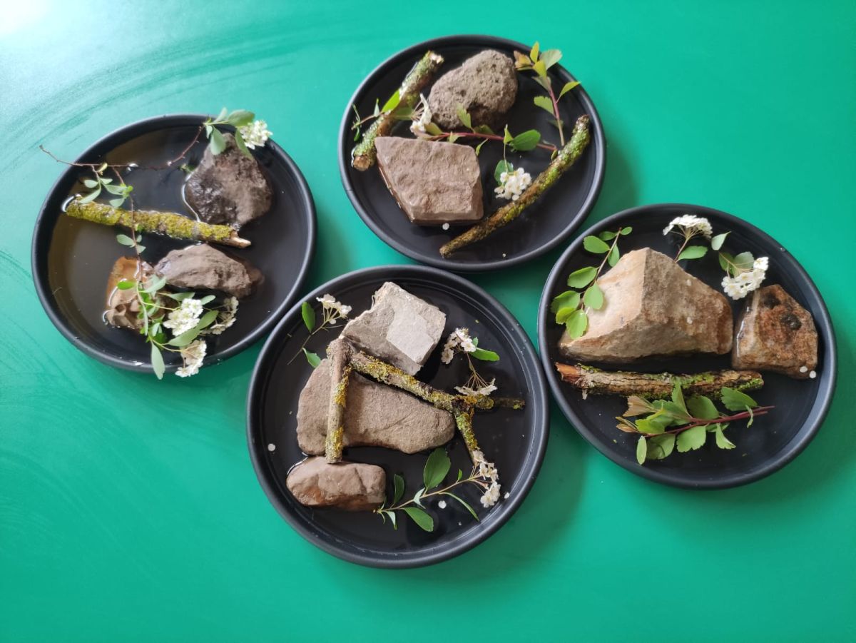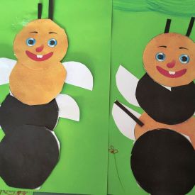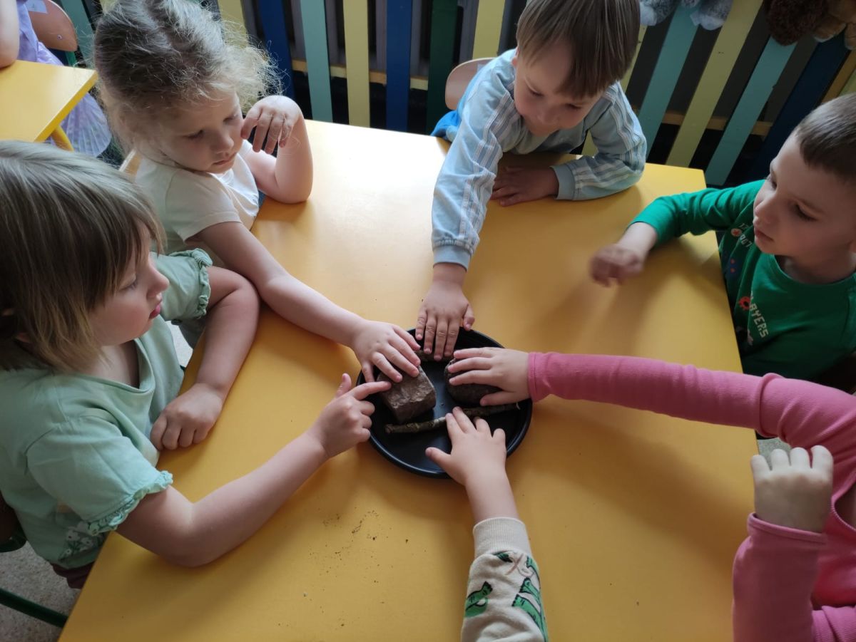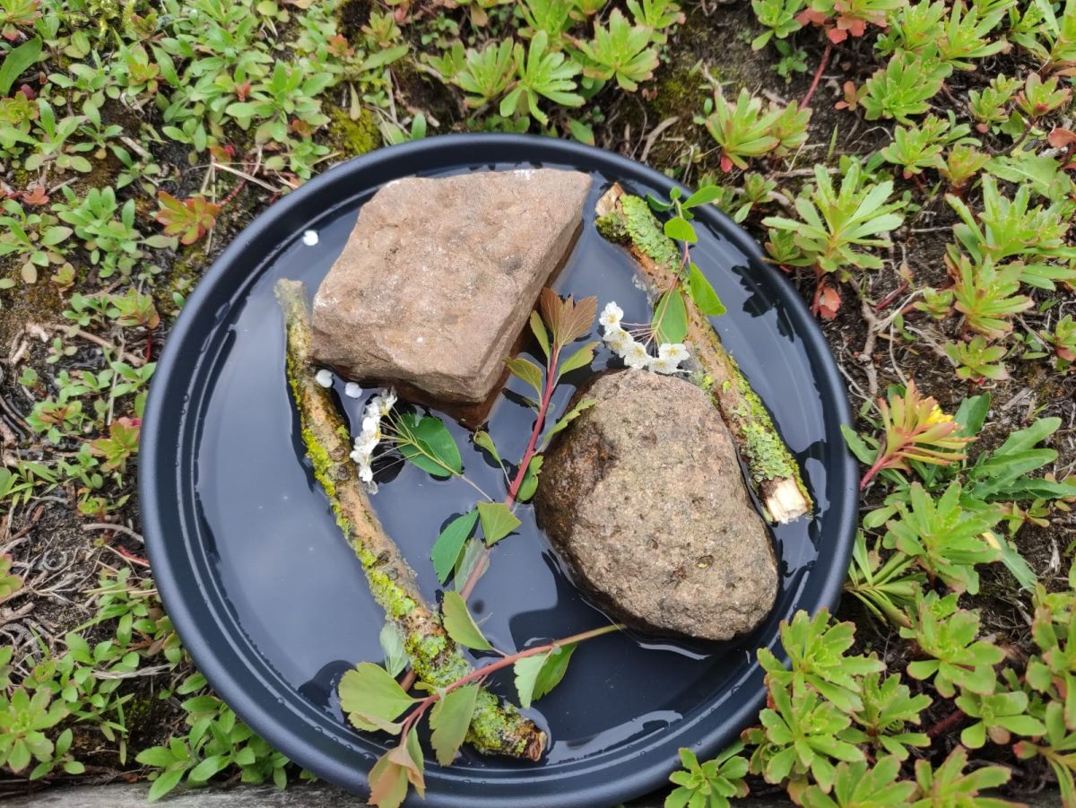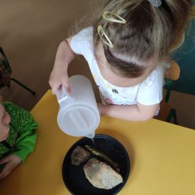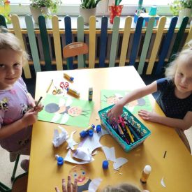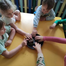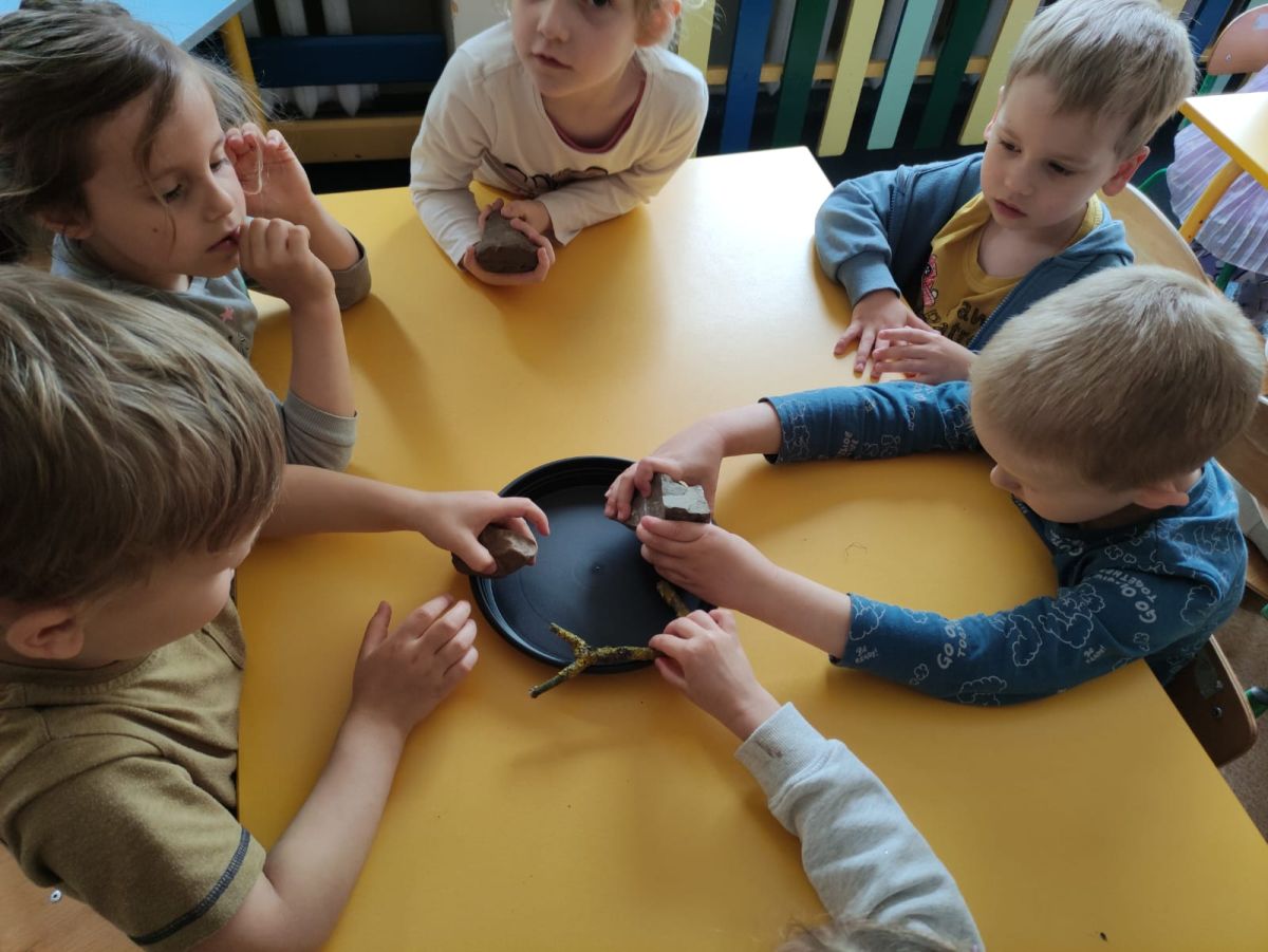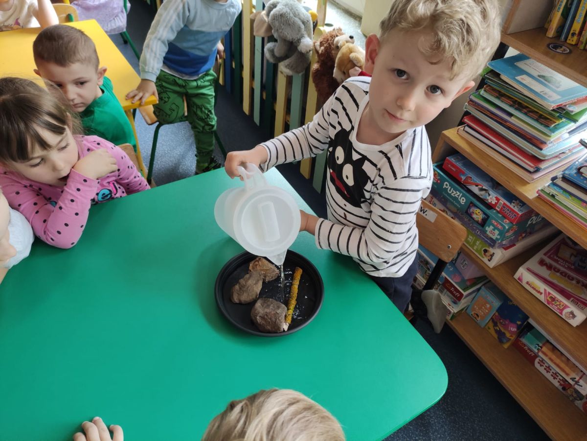 Przedszkolaki w zespołach zrobiły poidełka dla pszczół, które następnie rozstawiły w naszym ogrodzie przedszkolnym.