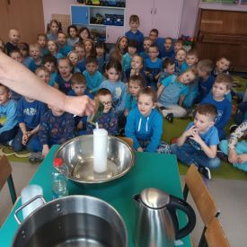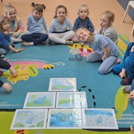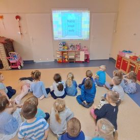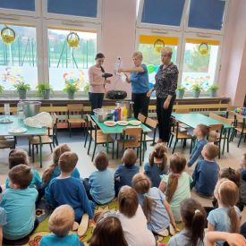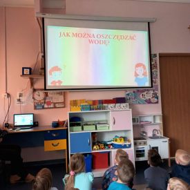 - Oglądanie filmu edukacyjnego "Woda wokół nas": Przedszkolaki miały okazję obejrzeć film edukacyjny, który zapewne zawierał ciekawe informacje na temat znaczenia wody dla życia na Ziemi, jej cyklu życia oraz sposobów jej ochrony. Film był wzbogacony o kolorowe animacje i przyjazny dla najmłodszych język, aby w przystępny sposób przekazać istotne informacje.