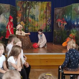 Przedszkolaki z grupy Biedronek i Żabek zostały zaproszone i dnia 19.04.2024 r. wybrały się do Szkoły Podstawowej nr 31 im. Henryka Sienkiewicza na obejrzenie przedstawienia pt. „O Czerwonym Kapturku, który wie, co zdrowe” w wykonaniu uczniów z klasy II C.
