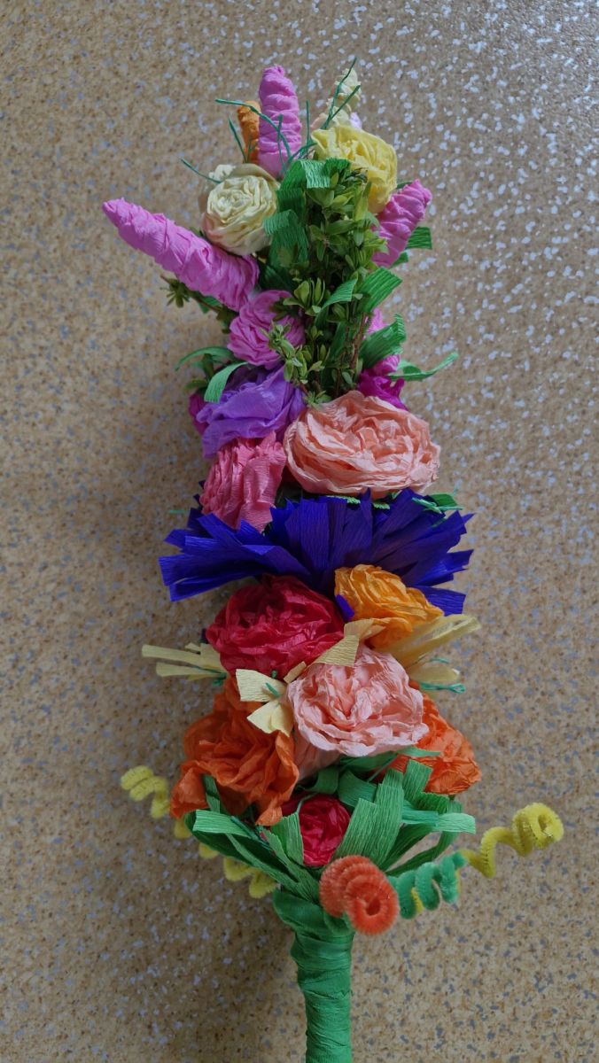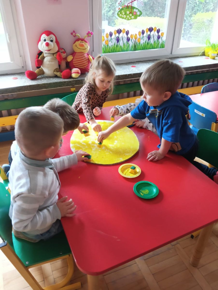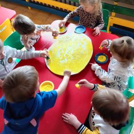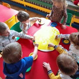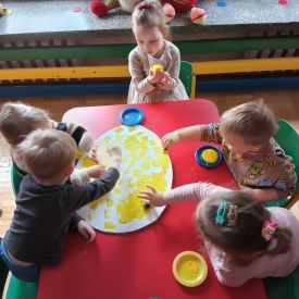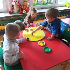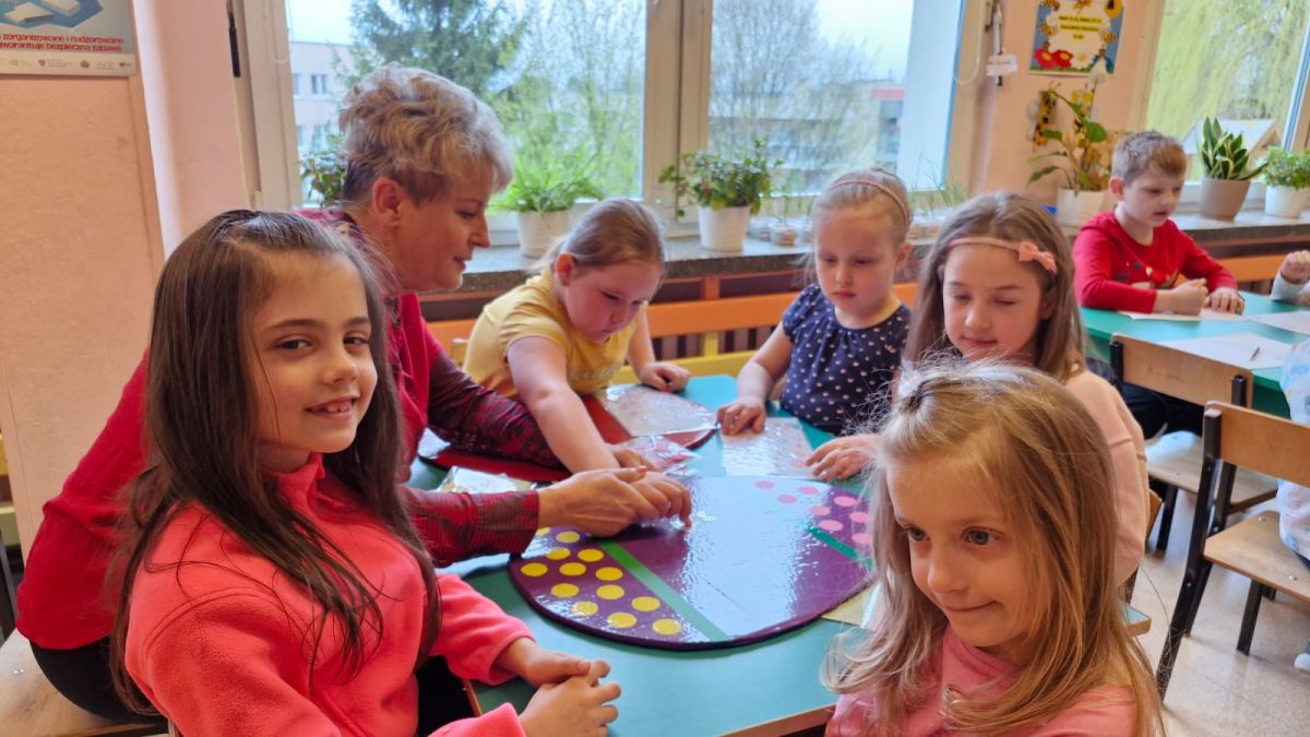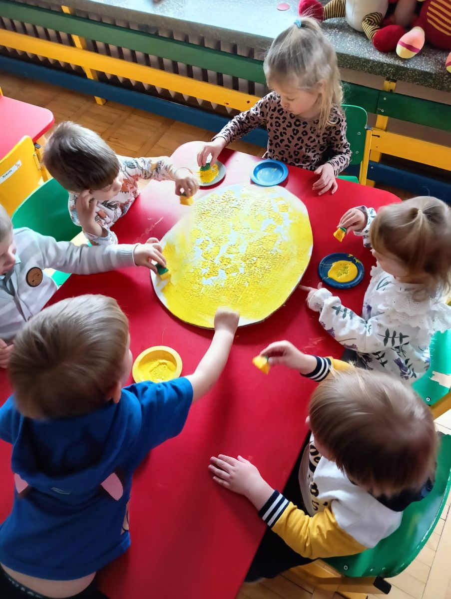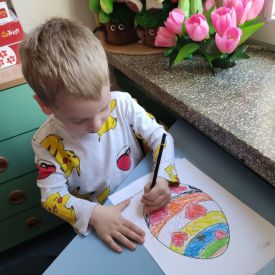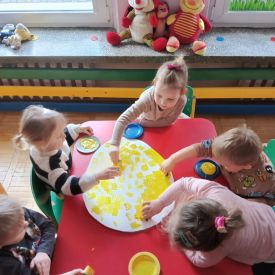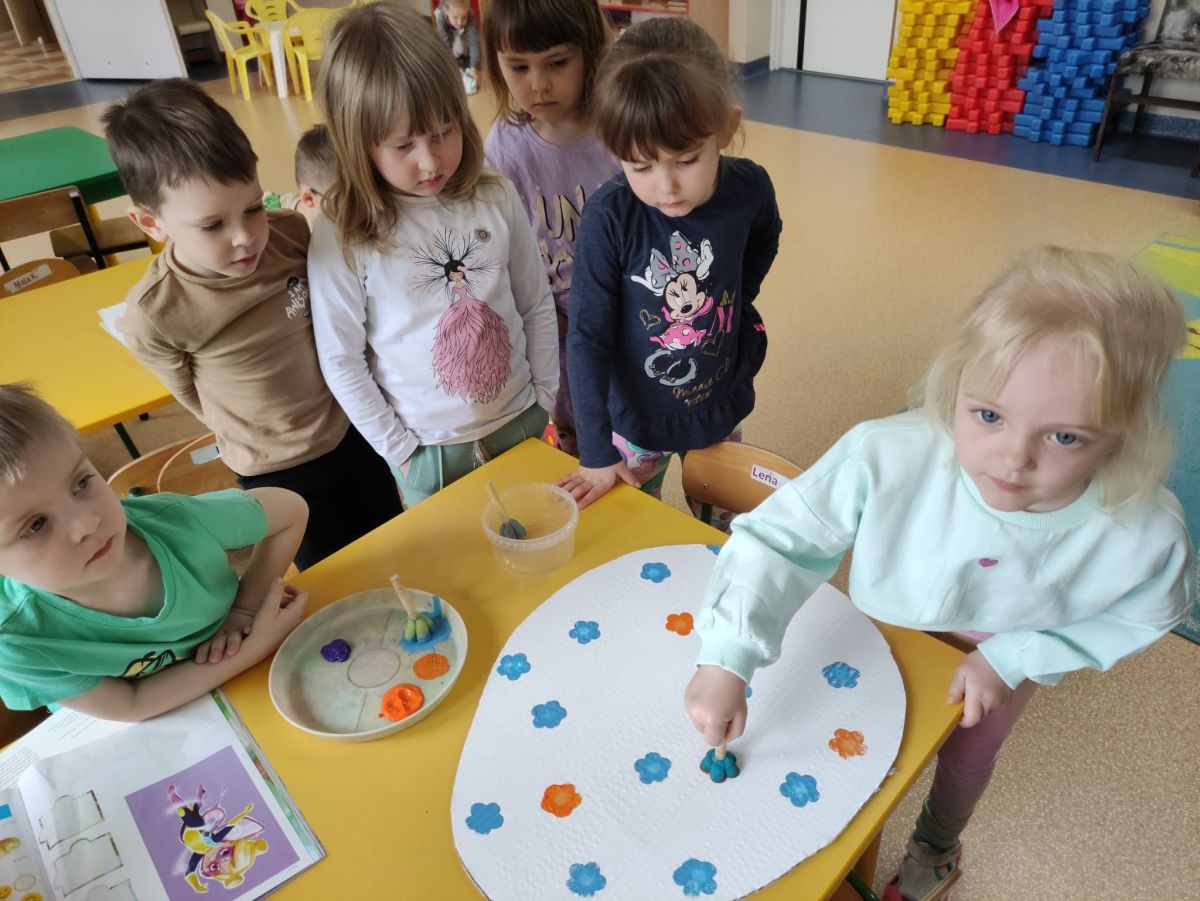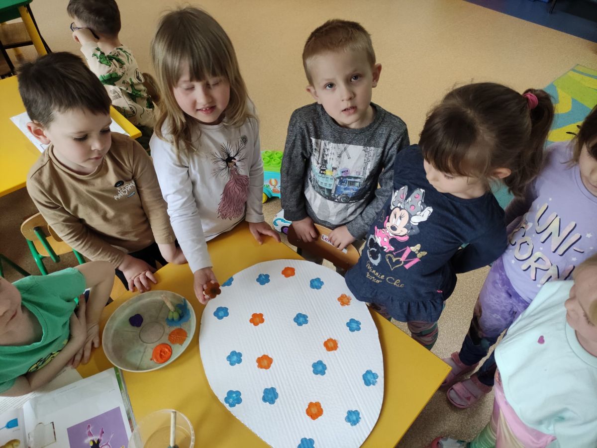 Tuż przed świętami wielkanocnymi panowała w naszym przedszkolu świąteczna atmosfera. Tworzenie palm wielkanocnych, kartek z życzeniami, stroików z rzeżuchy, bukszpanów . Z każdym dniem w naszych salach, holu przedszkolnym przybywało wielkanocnych symboli.
