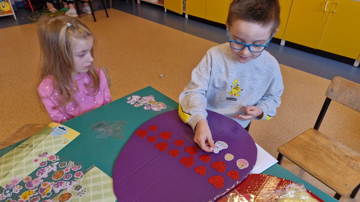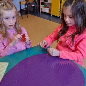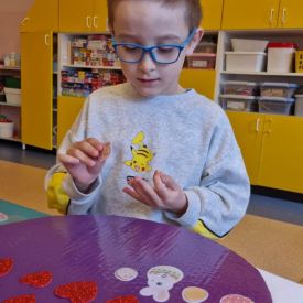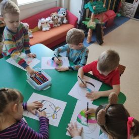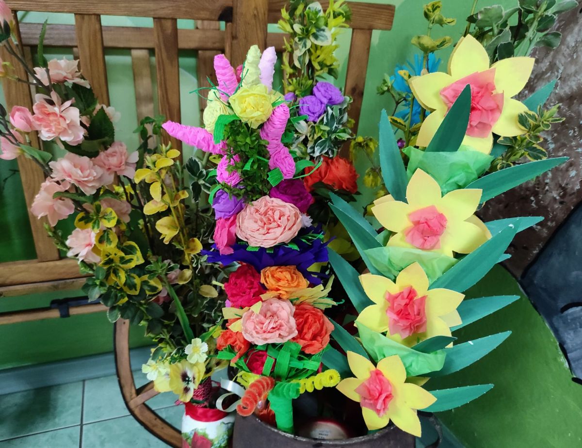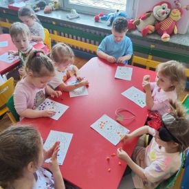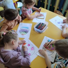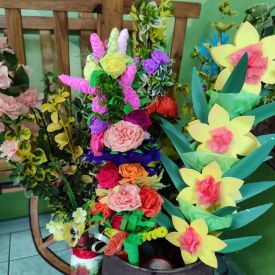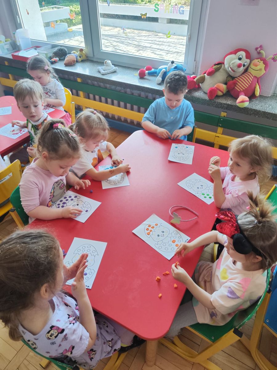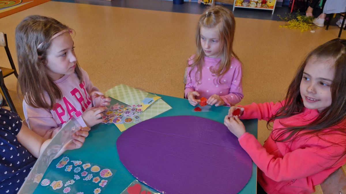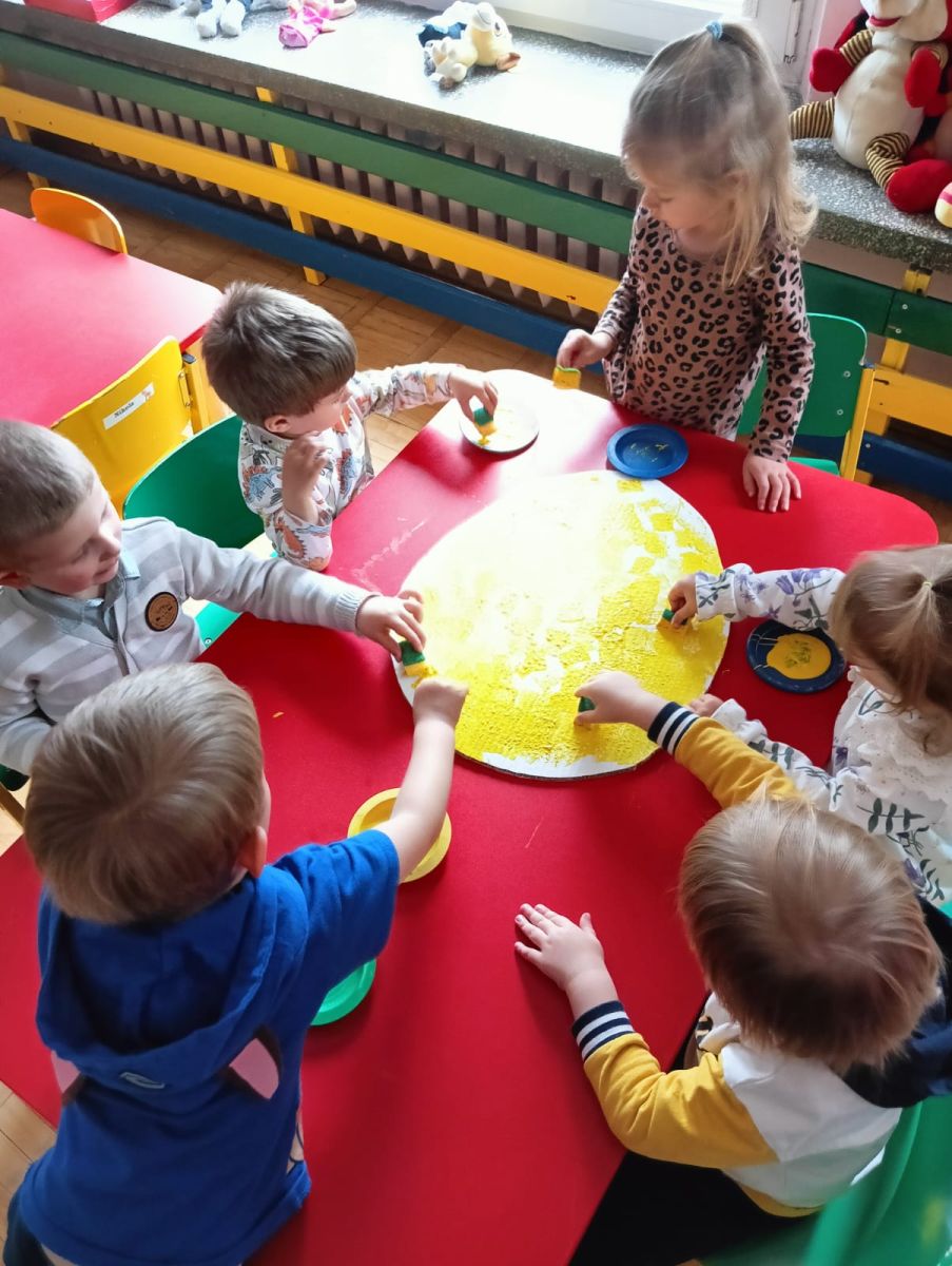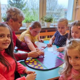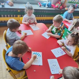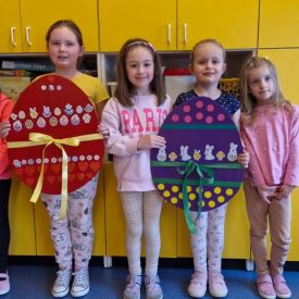 Tuż przed świętami wielkanocnymi panowała w naszym przedszkolu świąteczna atmosfera. Tworzenie palm wielkanocnych, kartek z życzeniami, stroików z rzeżuchy, bukszpanów . Z każdym dniem w naszych salach, holu przedszkolnym przybywało wielkanocnych symboli.