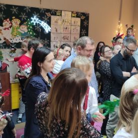 Przedszkolaki zaprezentowały wiersze, piosenki o tematyce świątecznej. Każdy mały artysta starał się z całych sił, by jak najpiękniej zaprezentować swoje umiejętności przed rodzicami. Po programie artystycznym wychowawczyni zaprosiła dzieci i rodziców na warsztaty.