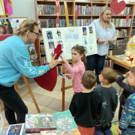 WIZYTA PSZCZÓŁEK I SÓWEK W BIBLIOTECE - ZAJĘCIA O WALENTYNKACH „ZAKOCHANE FERIE… W BIBLIOTECE”