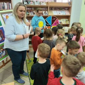 Było to emocjonujące oraz stymulujące wyzwanie dla naszych małych uczestników. Zadania te nie tylko rozwijały umiejętności logicznego myślenia i spostrzegawczości, ale również integrowały grupę poprzez wspólne rozwiązywanie problemów. Dzięki tej aktywności nasze dzieci mogły odkrywać różnorodność postaci literackich i związanych z nimi historii, co stanowiło inspirującą lekcję o przyjaźni, współpracy i zrozumieniu dla naszych najmłodszych czytelników. W trakcie wizyty Panie bibliotekarki zapewniły również naszym dzieciom wspaniałą okazję do zapoznania się z różnorodnością książek dostępnych w bibliotece, co pomaga rozbudzić ich zainteresowania czytelnicze i zachęcić do odkrywania nowych światów.