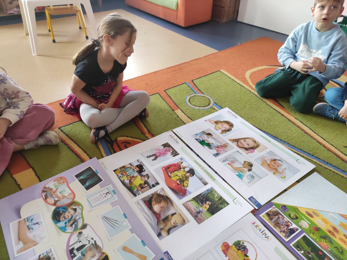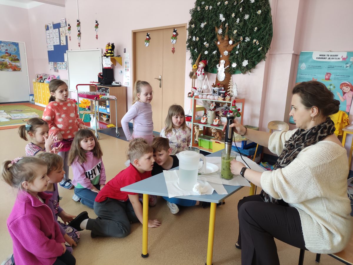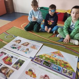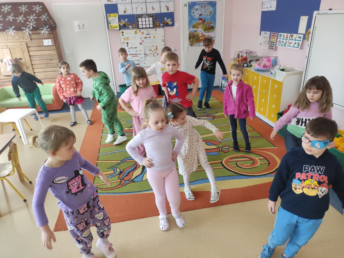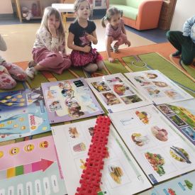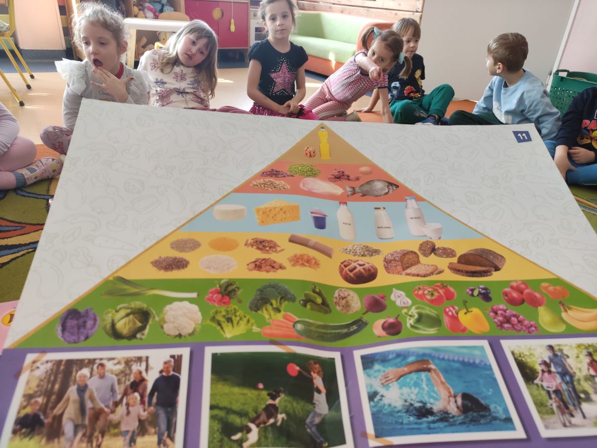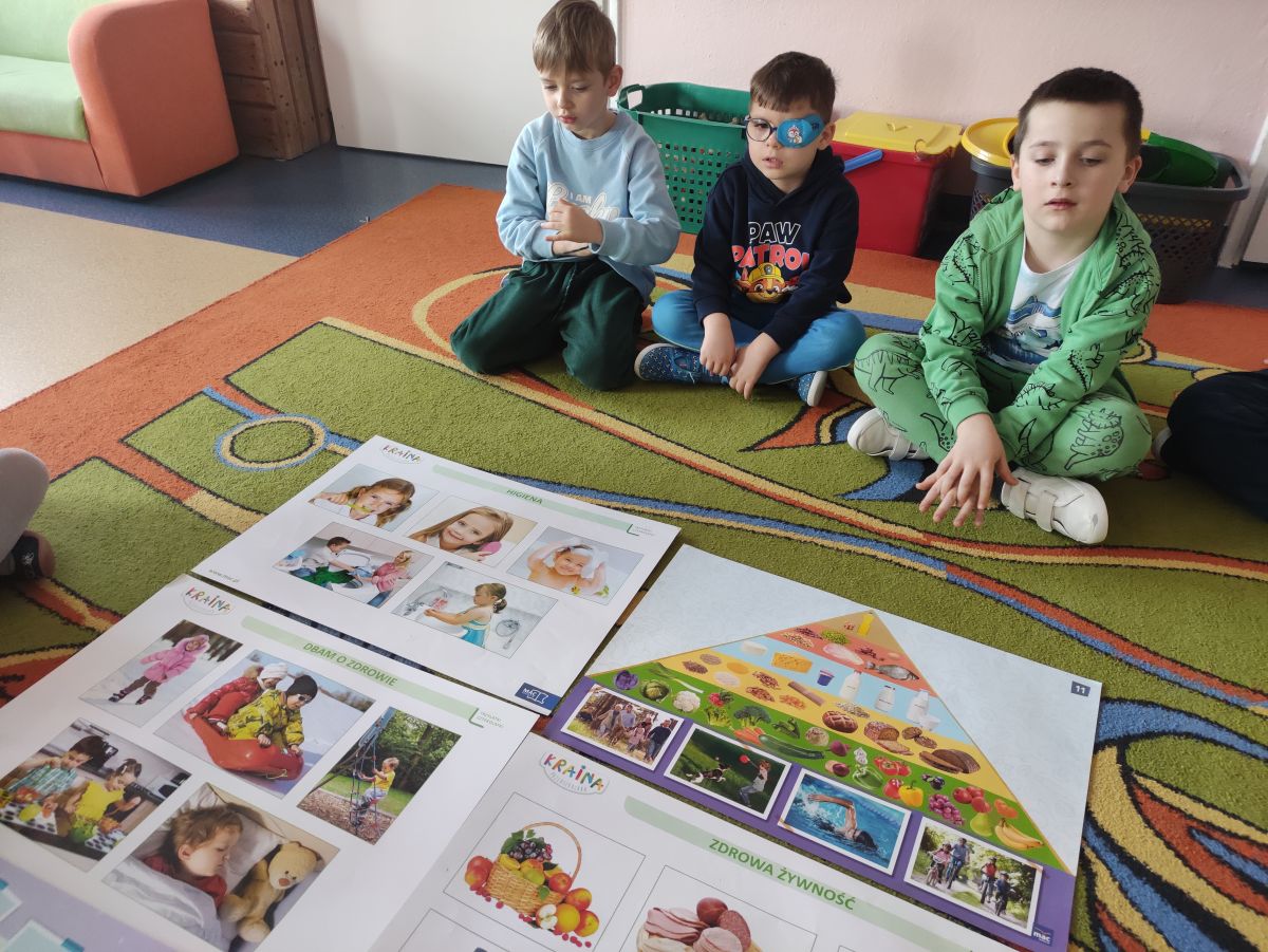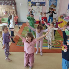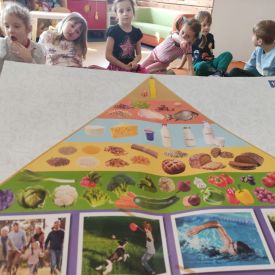 Przedszkolaki z grupy Pszczółek zrealizowały kolejne zadania z ogólnopolskiego projektu edukacyjnego "Postaw na wartości" zawarte w Kręgu IV - "Postaw na zdrowie". Dzieci wiedzą, że trzeba dbać o higienę osobistą, bo bakterie i wirusy robią dla zdrowia psikusy, a gdy ręce czyste - zdrowie oczywiste. Przedszkolaki pewnego dnia przygotowywały sobie samodzielnie śniadanie oraz zielony koktajl, który wszyscy wypili ze smakiem zaś samodzielnie wykonane kanapki były kolorowe i smaczne. Dzieci pamiętają, że gdy na talerzu kolorowo, to dla ciała zdrowo, a warzywa i owoce mają supermoce! Po zdrowym porannym posiłku przyszedł czas na gimnastykę, zabawy przy muzyce oraz pobyt na świeżym powietrzu w myśl zasad: w zdrowym śniadaniu - siła w działaniu, śmiech i zabawa- to zdrowia podstawa. Pszczółki obiecały, że będą pamiętać o powyższych zasadach, gdyż każdy chce być zdrowy!