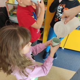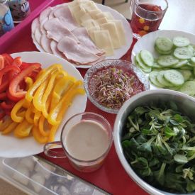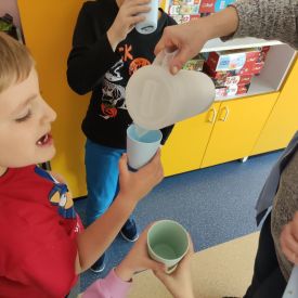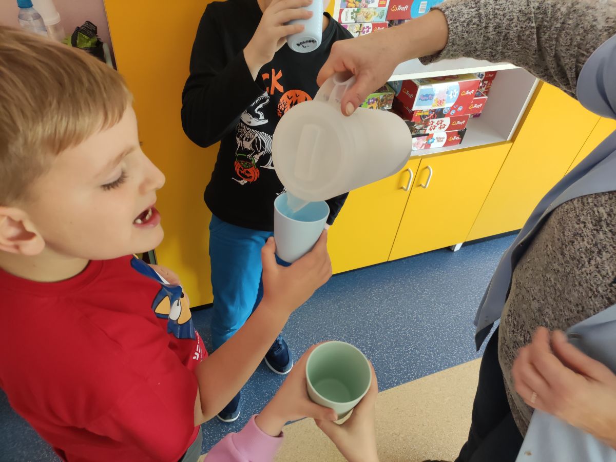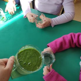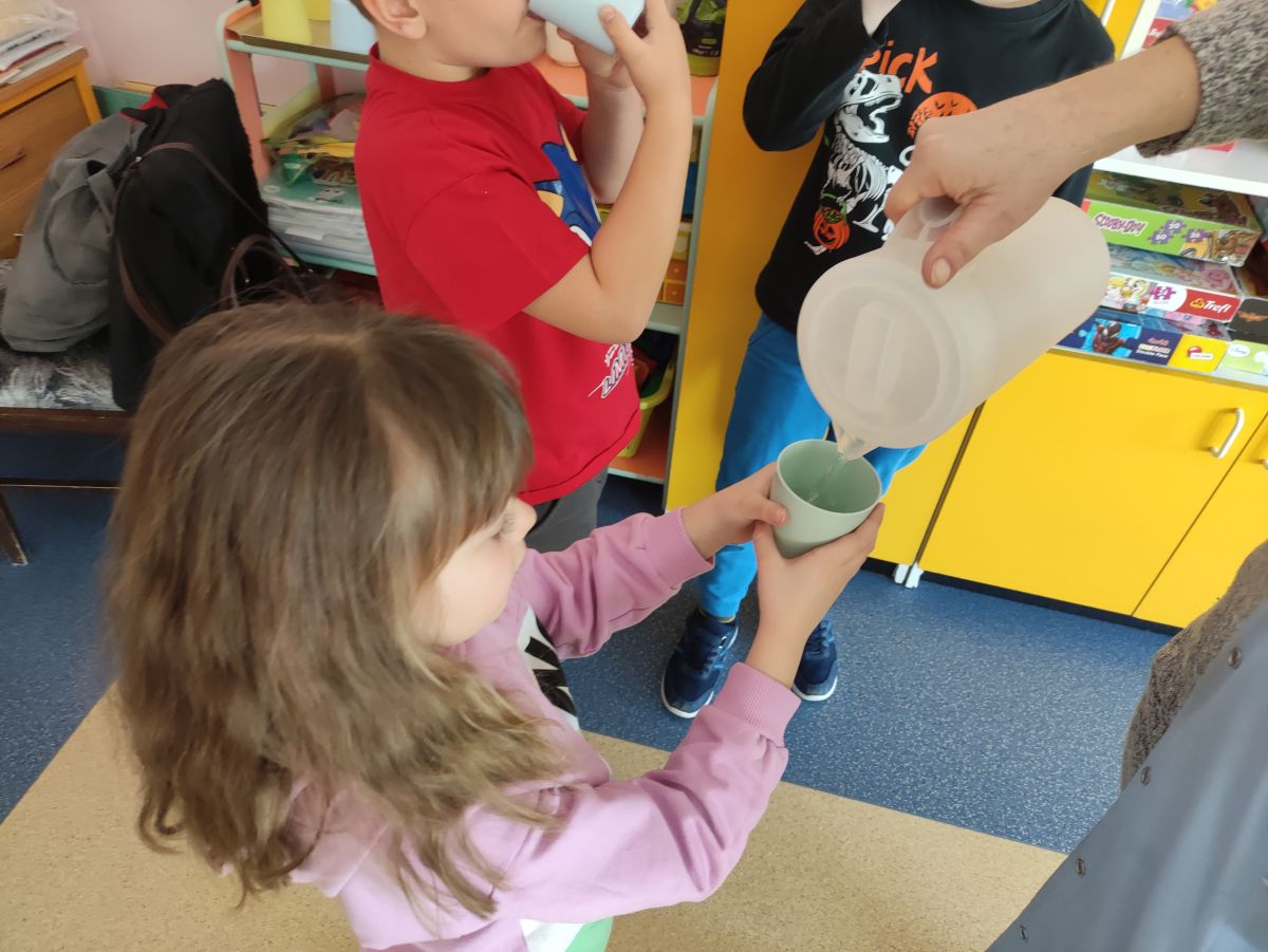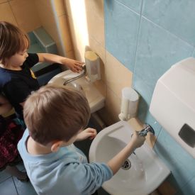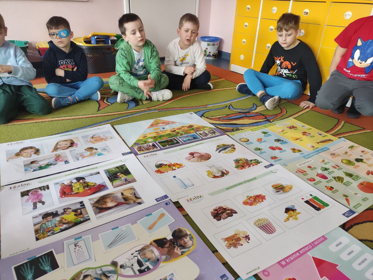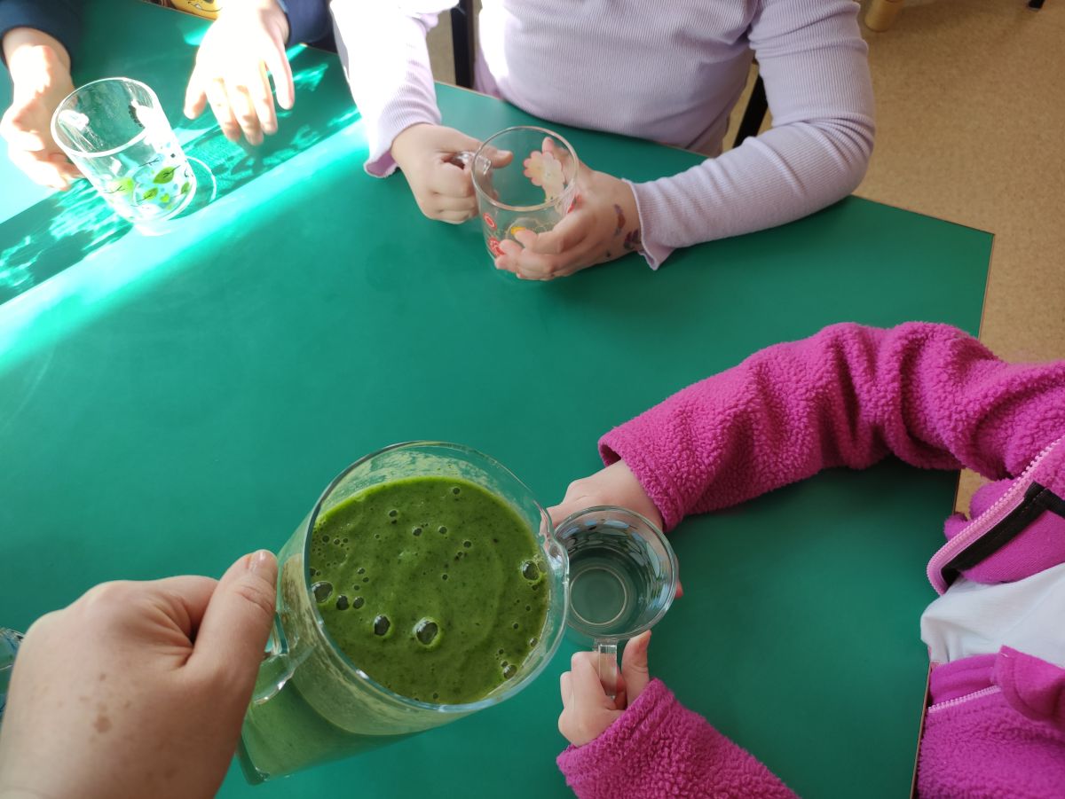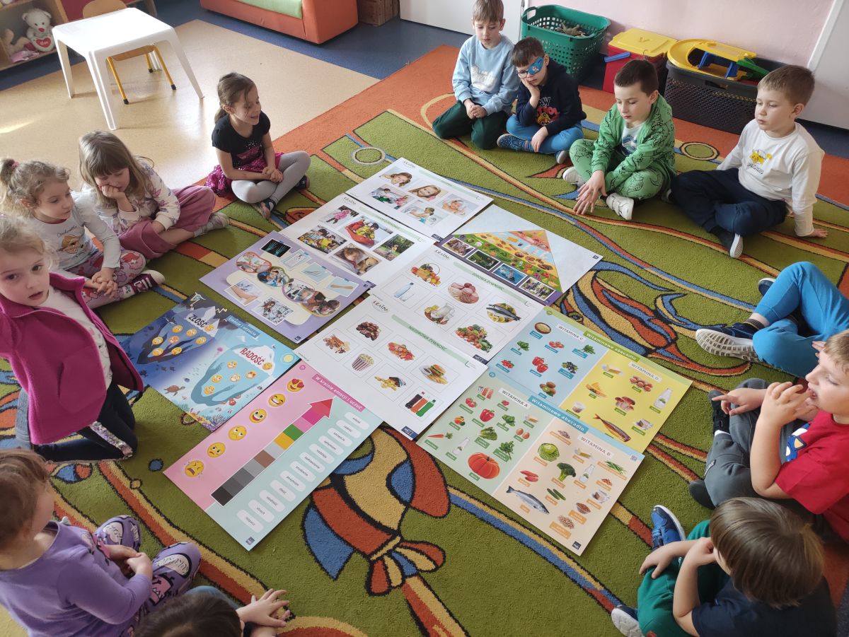 Przedszkolaki z grupy Pszczółek zrealizowały kolejne zadania z ogólnopolskiego projektu edukacyjnego "Postaw na wartości" zawarte w Kręgu IV - "Postaw na zdrowie". Dzieci wiedzą, że trzeba dbać o higienę osobistą, bo bakterie i wirusy robią dla zdrowia psikusy, a gdy ręce czyste - zdrowie oczywiste. Przedszkolaki pewnego dnia przygotowywały sobie samodzielnie śniadanie oraz zielony koktajl, który wszyscy wypili ze smakiem zaś samodzielnie wykonane kanapki były kolorowe i smaczne. Dzieci pamiętają, że gdy na talerzu kolorowo, to dla ciała zdrowo, a warzywa i owoce mają supermoce! Po zdrowym porannym posiłku przyszedł czas na gimnastykę, zabawy przy muzyce oraz pobyt na świeżym powietrzu w myśl zasad: w zdrowym śniadaniu - siła w działaniu, śmiech i zabawa- to zdrowia podstawa. Pszczółki obiecały, że będą pamiętać o powyższych zasadach, gdyż każdy chce być zdrowy!