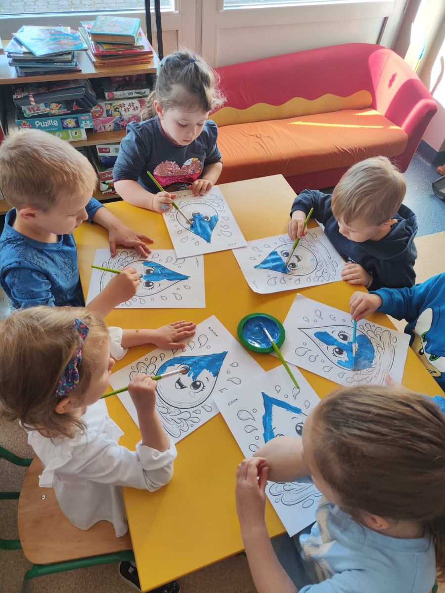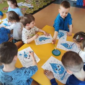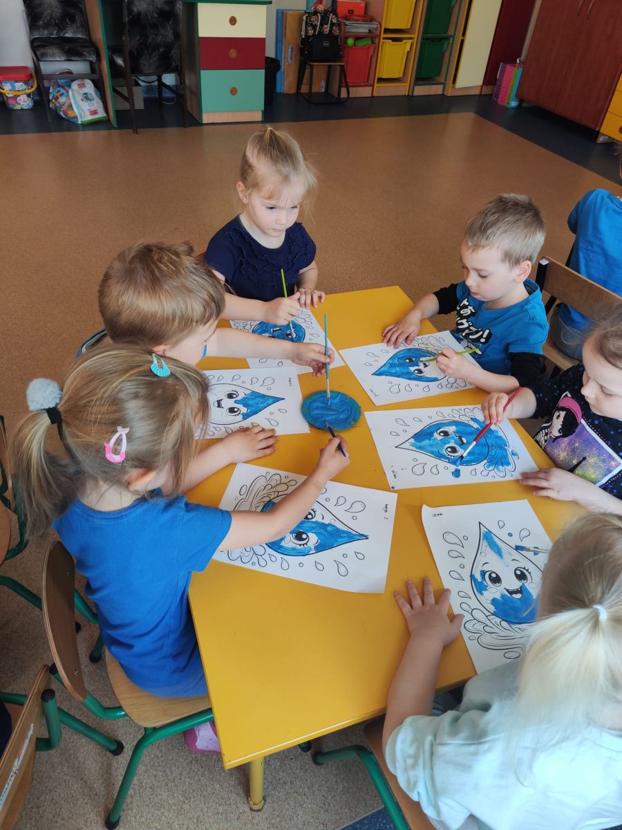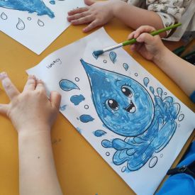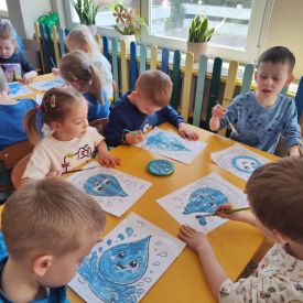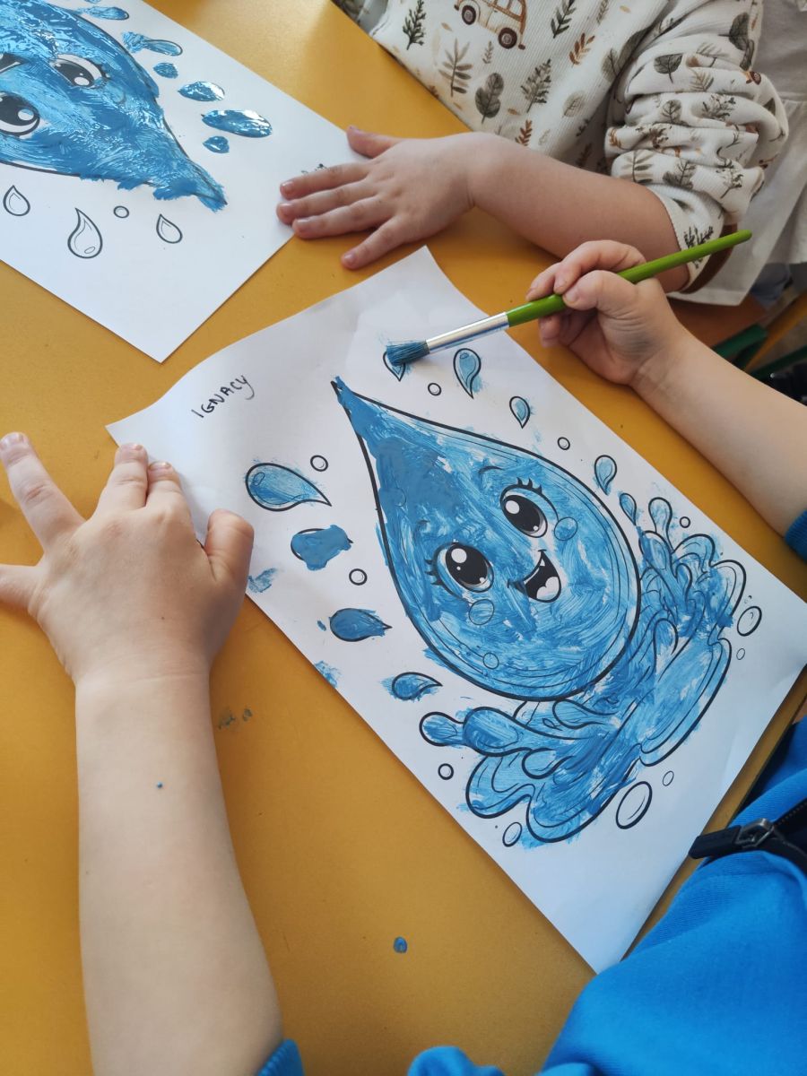 Kolejnym punktem dnia były zabawy ruchowe i muzyczne związane z tematyką wody, a także prace plastyczne.