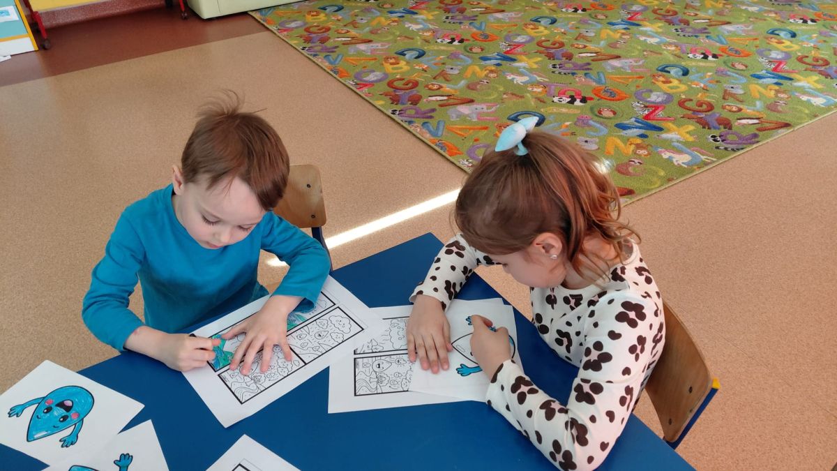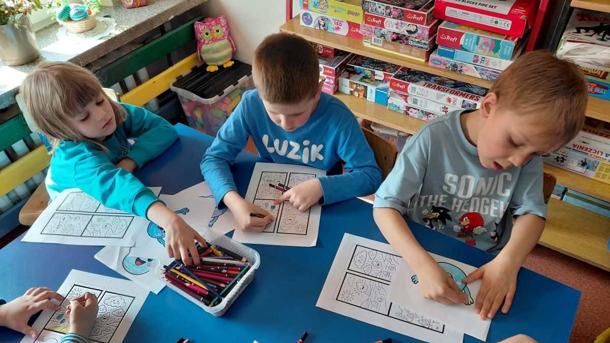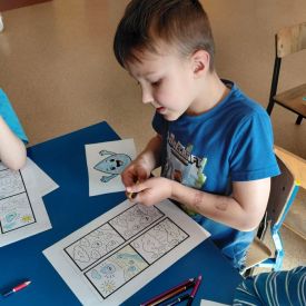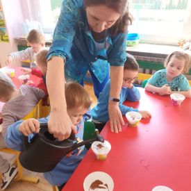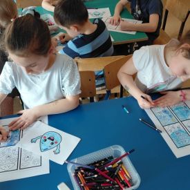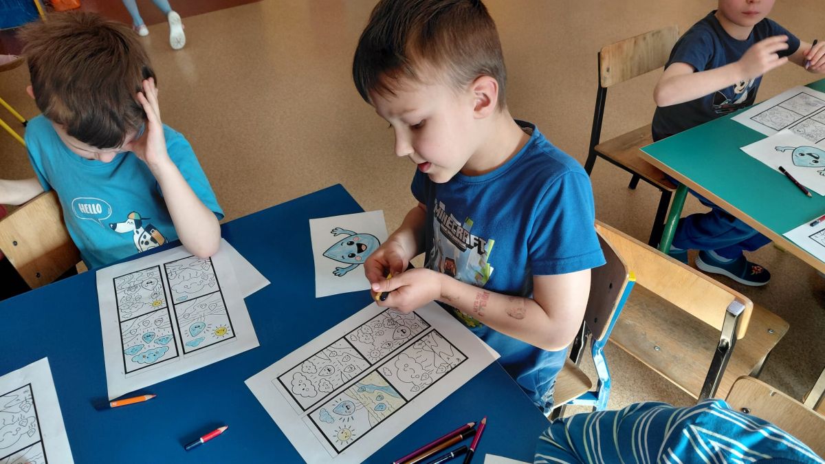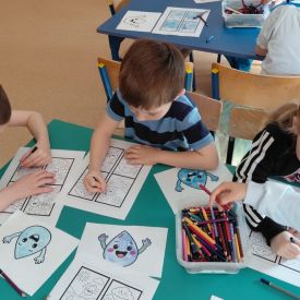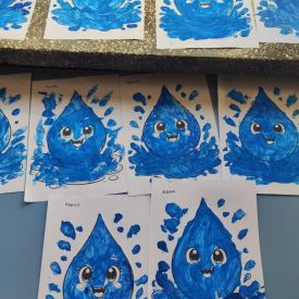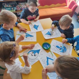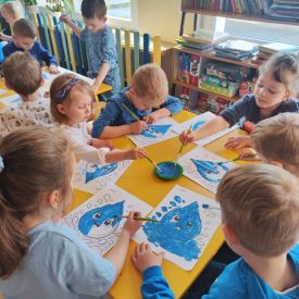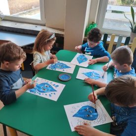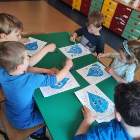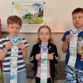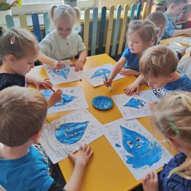 Kolejnym punktem dnia były zabawy ruchowe i muzyczne związane z tematyką wody, a także prace plastyczne.