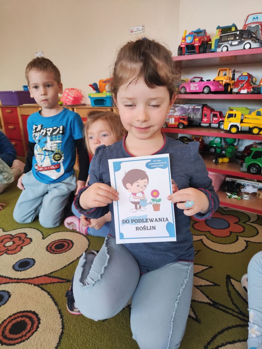 Dzieci dowiedziały się do czego woda jest potrzebna ludziom, zwierzętom i roślinom.