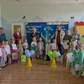 We wtorek 23 kwietnia Kornelka Radlica z grupy Motylków zaprezentowała się w IV Międzyprzedszkolnym Konkursie Recytatorskim „Ziemia – Zielona Wyspa” organizowanym przez Przedszkole Samorządowe nr 9 w Kielcach. Zadaniem dzieci była recytacja wierszy o tematyce z zakresu ochrony środowiska i ekologii. Kornelka z wielkim zaangażowaniem podjęła się wystąpienia przed nieznaną publicznością, o tremie nie było mowy a recytacja wypadła znakomicie. Ogólny wyraz artystyczny, gest sceniczny, piękny kostium zaprezentowany przez dziewczynkę wywołał zachwyt wśród publiczności. Kornelka, choć nie zajęła czołowego miejsca, za udział w konkursie otrzymała pamiątkową nagrodę oraz dyplom uznania. Dziewczynka oczywiście swoje umiejętności recytatorskie zaprezentowała również na forum grupy, która owacjami podziękowała jej za piękny występ. Życzymy Kornelce kolejnych wspaniałych wystąpień i sukcesów.