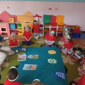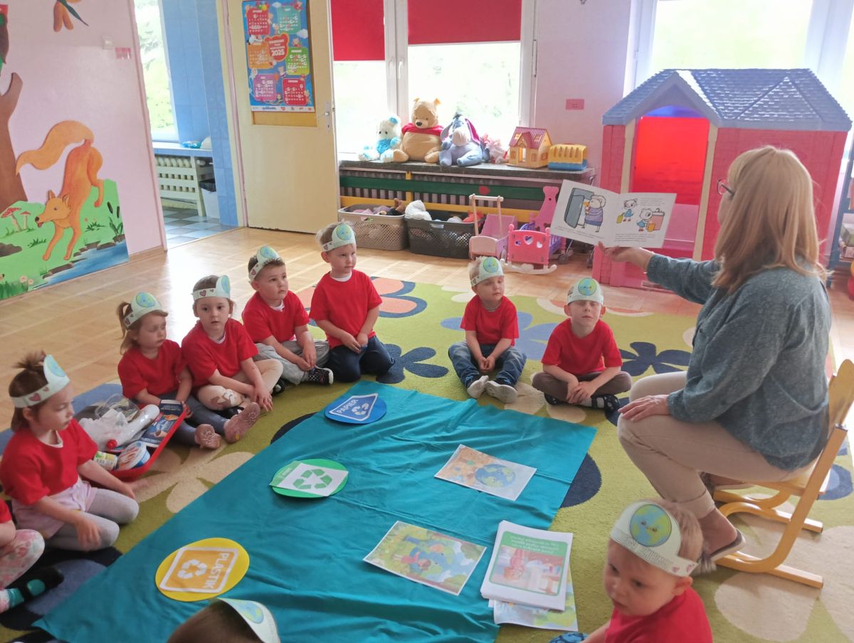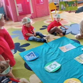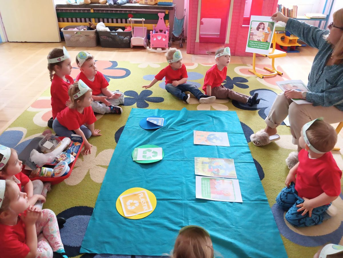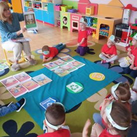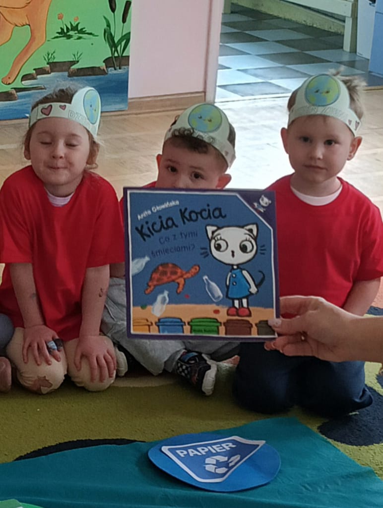 W ważny temat ekologii wprowadziła nasze maluszki ulubiona bohaterka książeczek - Kicia Kocia. Podczas kolejnych zajęć w ramach projektu „Z Kicią Kocią maluchy zmieniają się w zuchy” dzieci wysłuchały książeczki „Co z tymi śmieciami?”. Kicia Kocia, wraz z babcią i innymi postaciami książeczki w prosty sposób przedstawiła znaczenie segregacji odpadów i jej wpływu na środowisko. Celem zajęć było uświadomienie dzieci o ważności segregacji śmieci oraz podjęcie próby samodzielnego segregowania odpadów.
