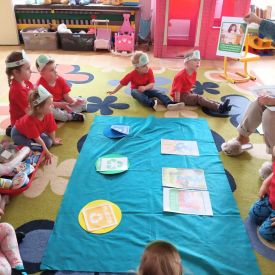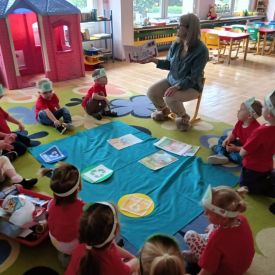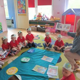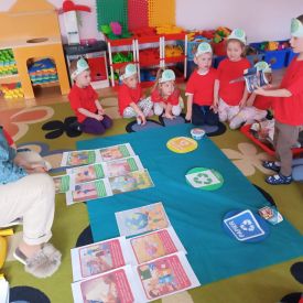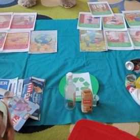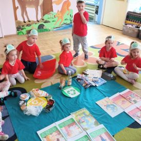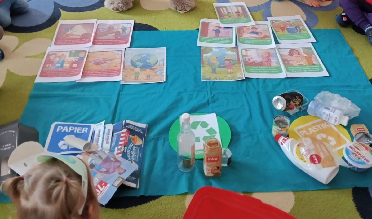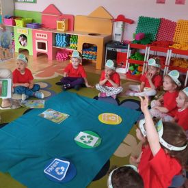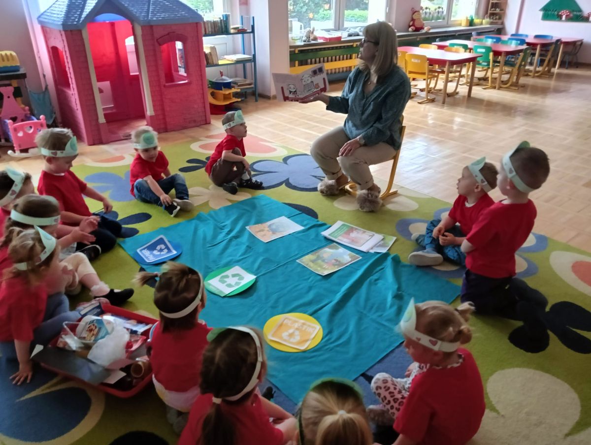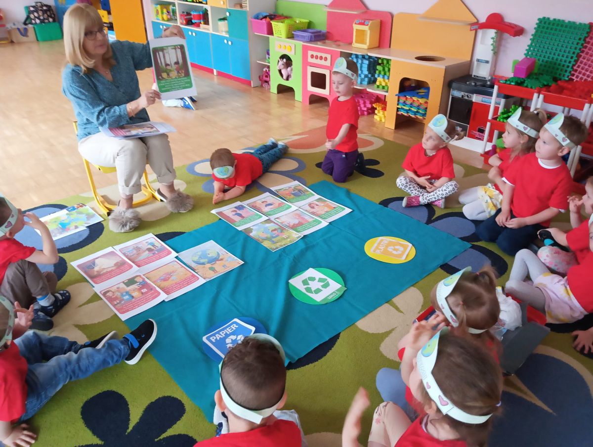 W ważny temat ekologii wprowadziła nasze maluszki ulubiona bohaterka książeczek - Kicia Kocia. Podczas kolejnych zajęć w ramach projektu „Z Kicią Kocią maluchy zmieniają się w zuchy” dzieci wysłuchały książeczki „Co z tymi śmieciami?”. Kicia Kocia, wraz z babcią i innymi postaciami książeczki w prosty sposób przedstawiła znaczenie segregacji odpadów i jej wpływu na środowisko. Celem zajęć było uświadomienie dzieci o ważności segregacji śmieci oraz podjęcie próby samodzielnego segregowania odpadów.
