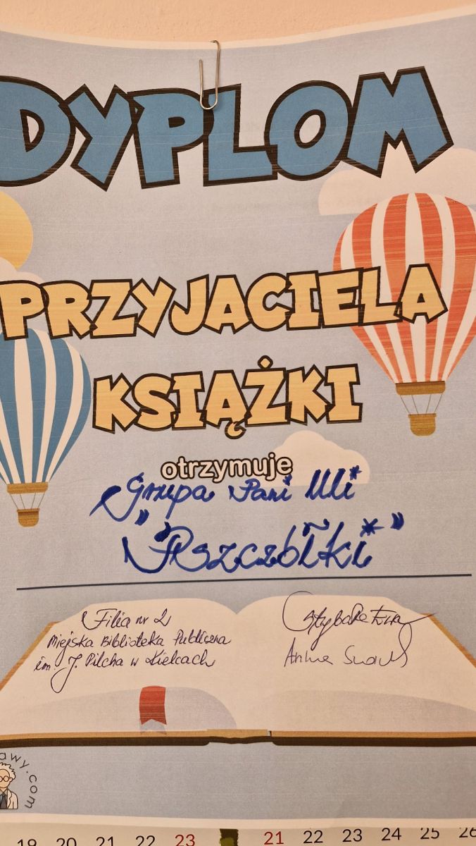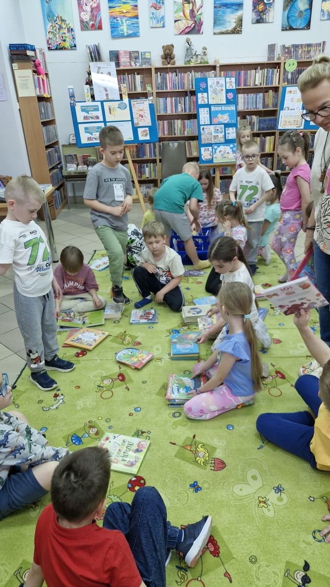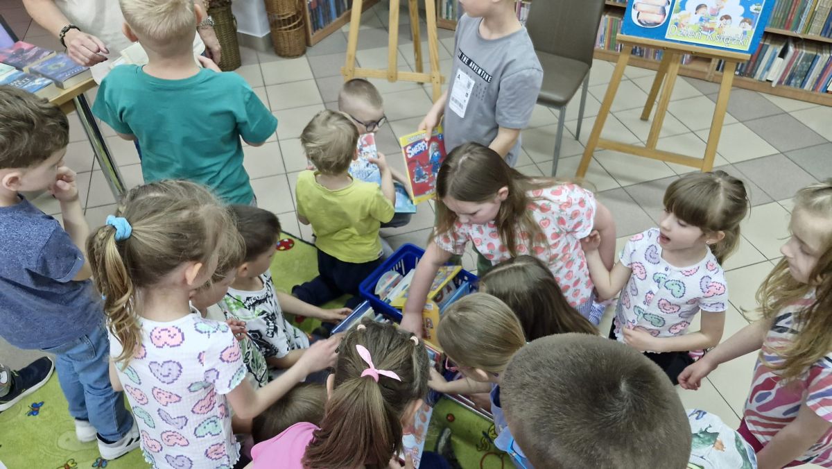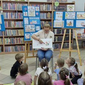 Wiek przedszkolny jest doskonałym czasem na rozbudzanie zainteresowań czytelniczych. Z okazji Światowego Dnia Książki, które obchodzimy corocznie 23 kwietnia, dzieci z grupy Pszczółek odwiedziły Miejską Bibliotekę Publiczną na osiedlu Podkarczówka. Dzieci mogły osobiście poznać bohaterów książek i pooglądać książeczki poukładane na półkach biblioteki. Spotkania z Książką dają dzieciom wiele radosnych przeżyć. Oprócz wspólnego czytania bajek i opowiadań, dzieci biorą udział w ciekawych zajęciach związanych z tematyką spotkania. Dzięki tym zajęciom dzieci mogą wspólnie przeżywać przygody różnych bohaterów, uczyć się nowych pozytywnych emocji, a także cieszyć się wspólną pracą. Promowanie czytelnictwa wśród dzieci, buduje więzi, zbliża kultury, zachęca do rozmów i bliskości międzypokoleniowej. Serdecznie dziękujemy.