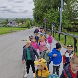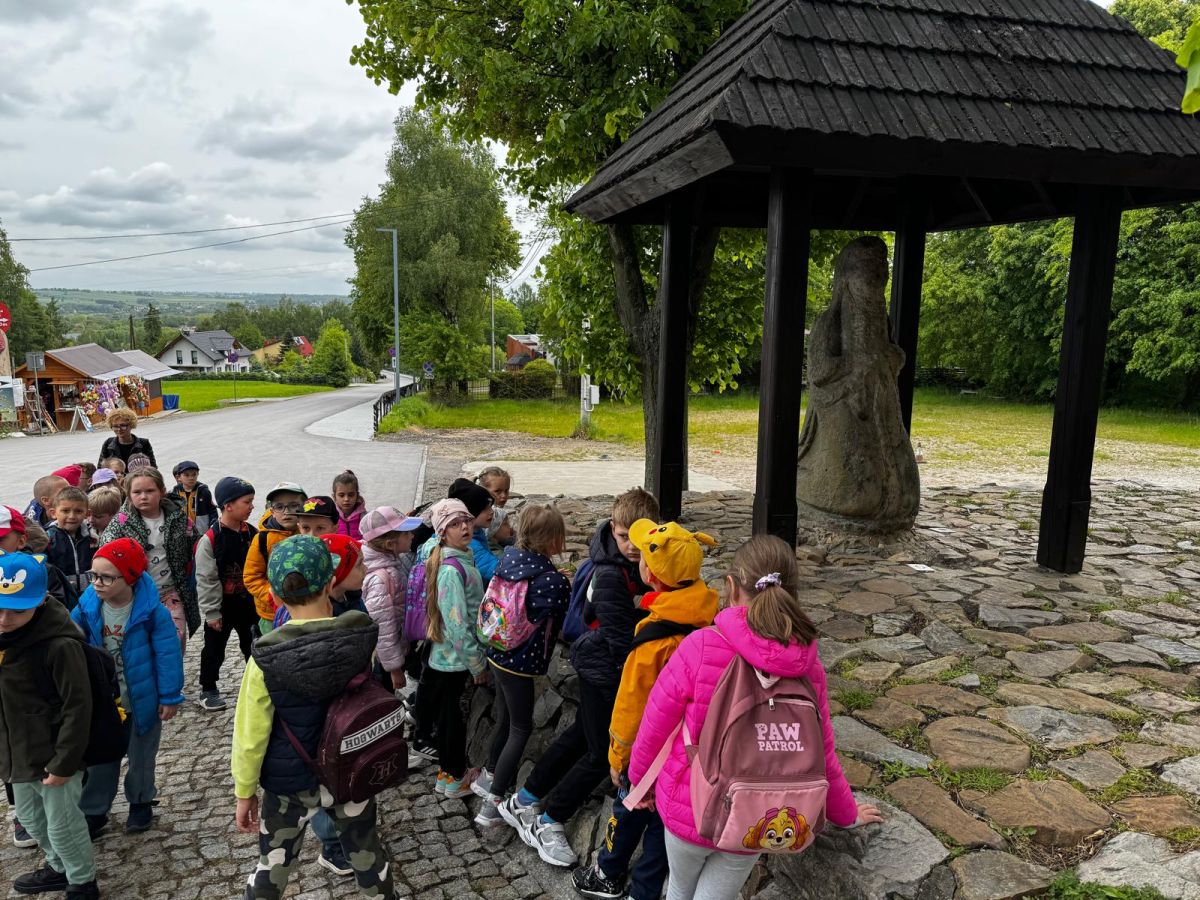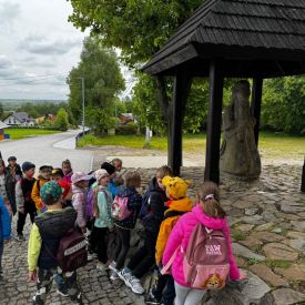 Przedszkolaki po zwiedzaniu udały się na krótki spacer pod figurę Emeryka, którego poznały w jednej z legend.