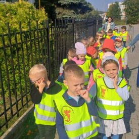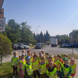 Dnia 18 września 2024 r. grupa III w odblaskowych kamizelkach wybrała się na spacer na pobliskie skrzyżowanie. Przedszkolaki obserwowali ruch uliczny, szukaliznaków drogowych poznanych na zajęciach. W poprawny i bezpieczny sposób ćwiczyli przechodzenie przez ulicę jak jest sygnalizacja świetlna i gdy jej nie ma. Motylki wiedzą jak być bezpiecznym!