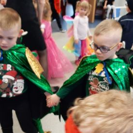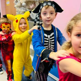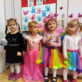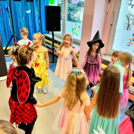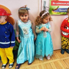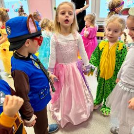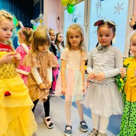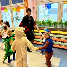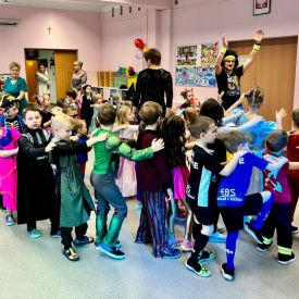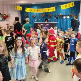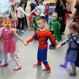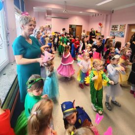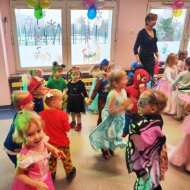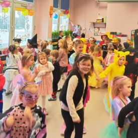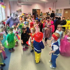 Wszyscy wspaniałe się bawili przebrani w różnokolorowe, barwne stroje. Były zabawy, konkursy i tańce. Dziękujemy Rodzicom za zaangażowanie w przygotowanie pięknych strojów dla dzieci.