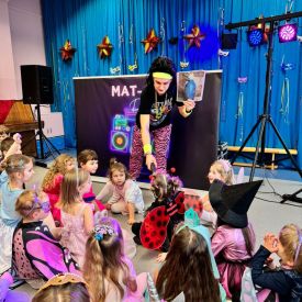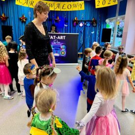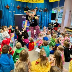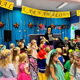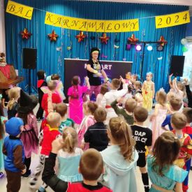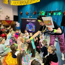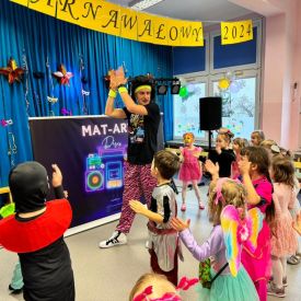 W środę 24 stycznia 2024 r. w naszym przedszkolu odbył się Bal karnawałowy pod hasłem „Retro - Disco lata 80” prowadzony przez Agencję Artystyczną „Mat-Art”.